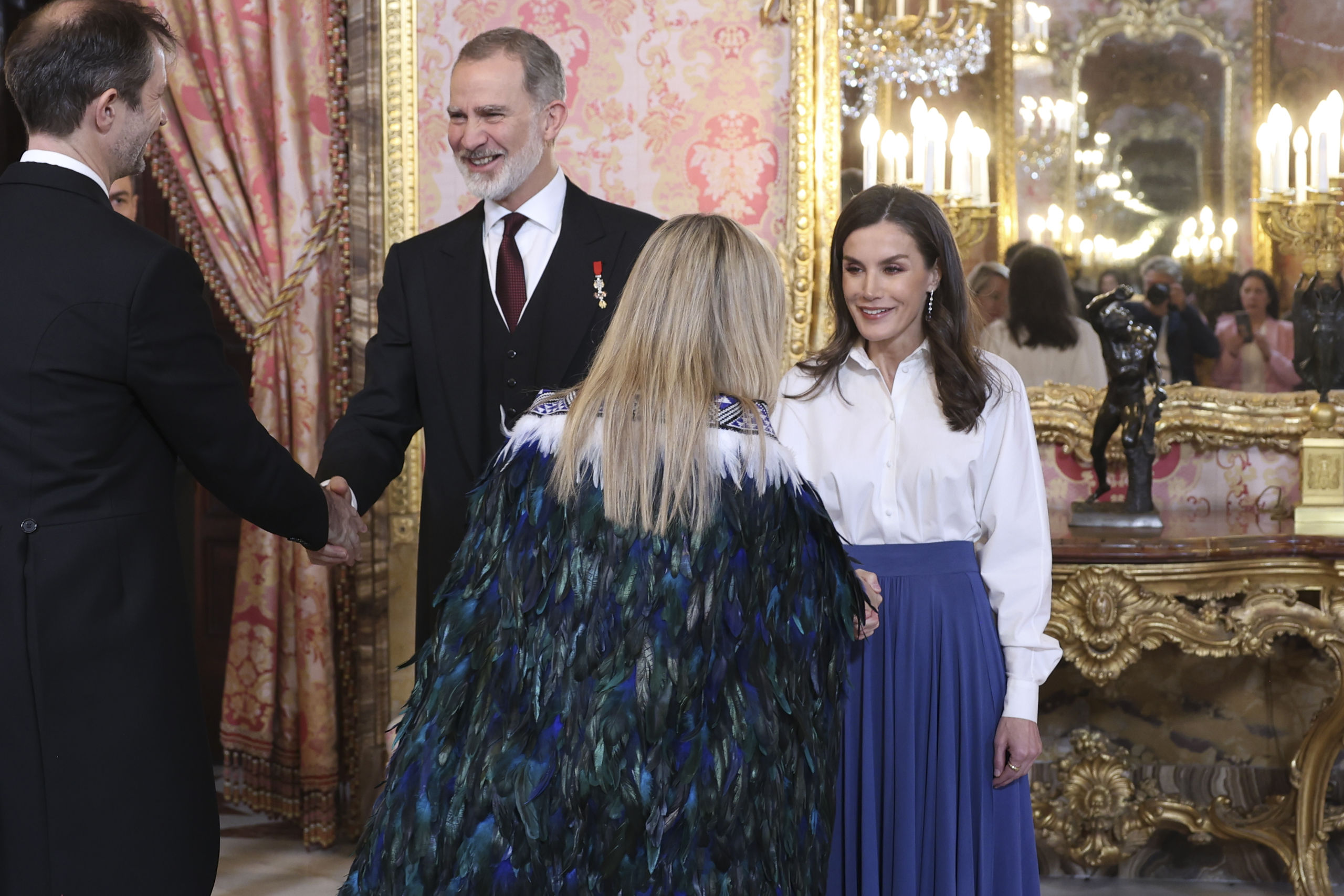 Por su parte, uno de los momentos que más ha sorprendido a Doña Letizia ha sido ante el vestuario elegido por la embajadora de Nueva Zelanda en España, Tara Morton.