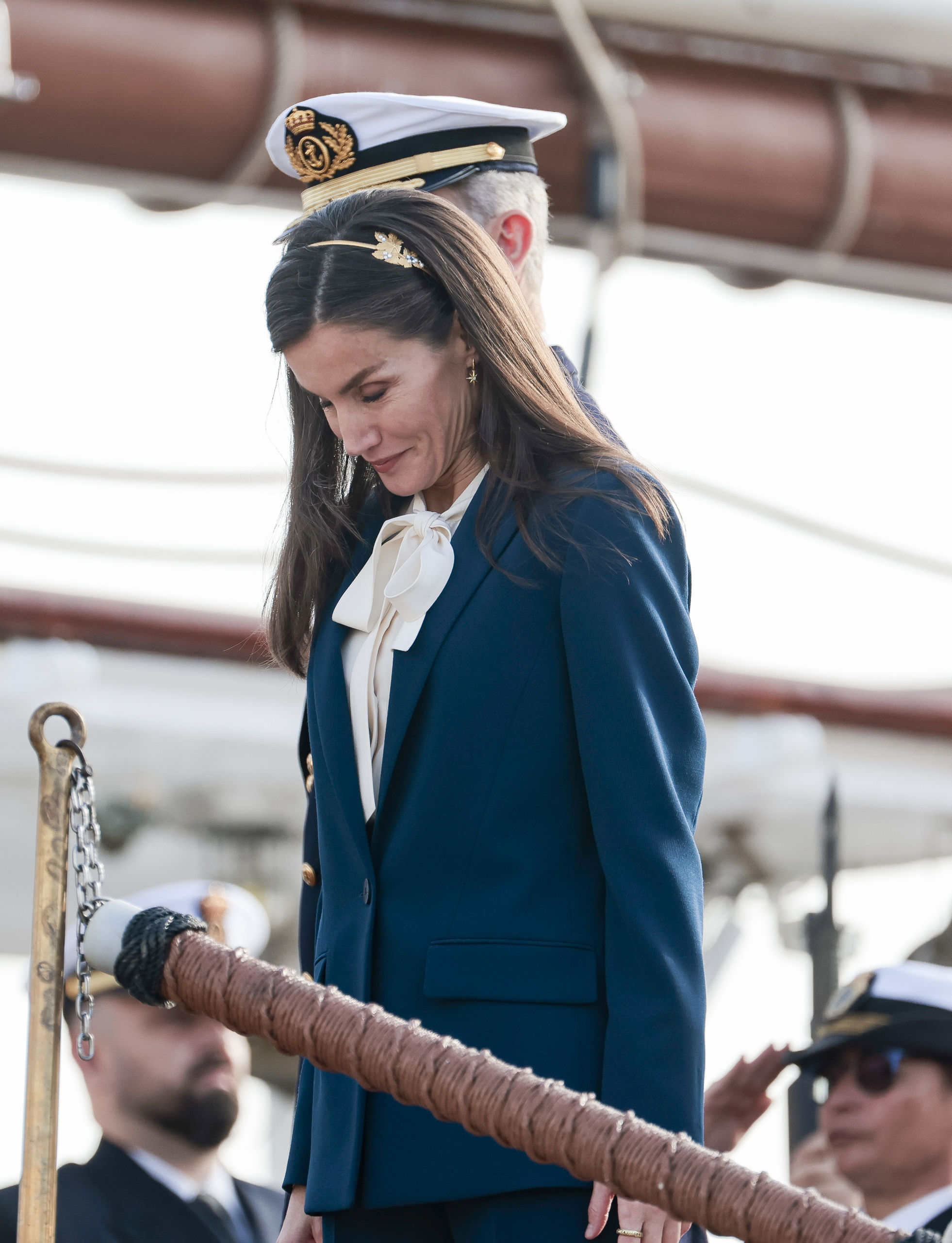 Es indudable que la protagonista de este sábado era nuestra princesa Leonor y su embarque en el buque escuela Juan Sebastián Elcano, donde recibirá adiestramiento durante seis meses. Sin embargo Letizia ha vuelto a acaparar todas las miradas con un elegante conjunto lleno de simbolismo.
