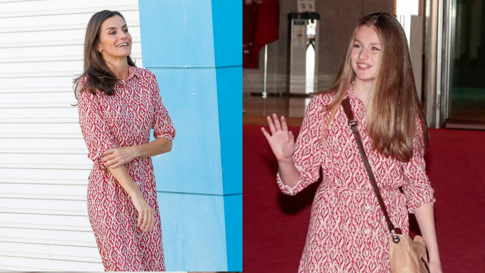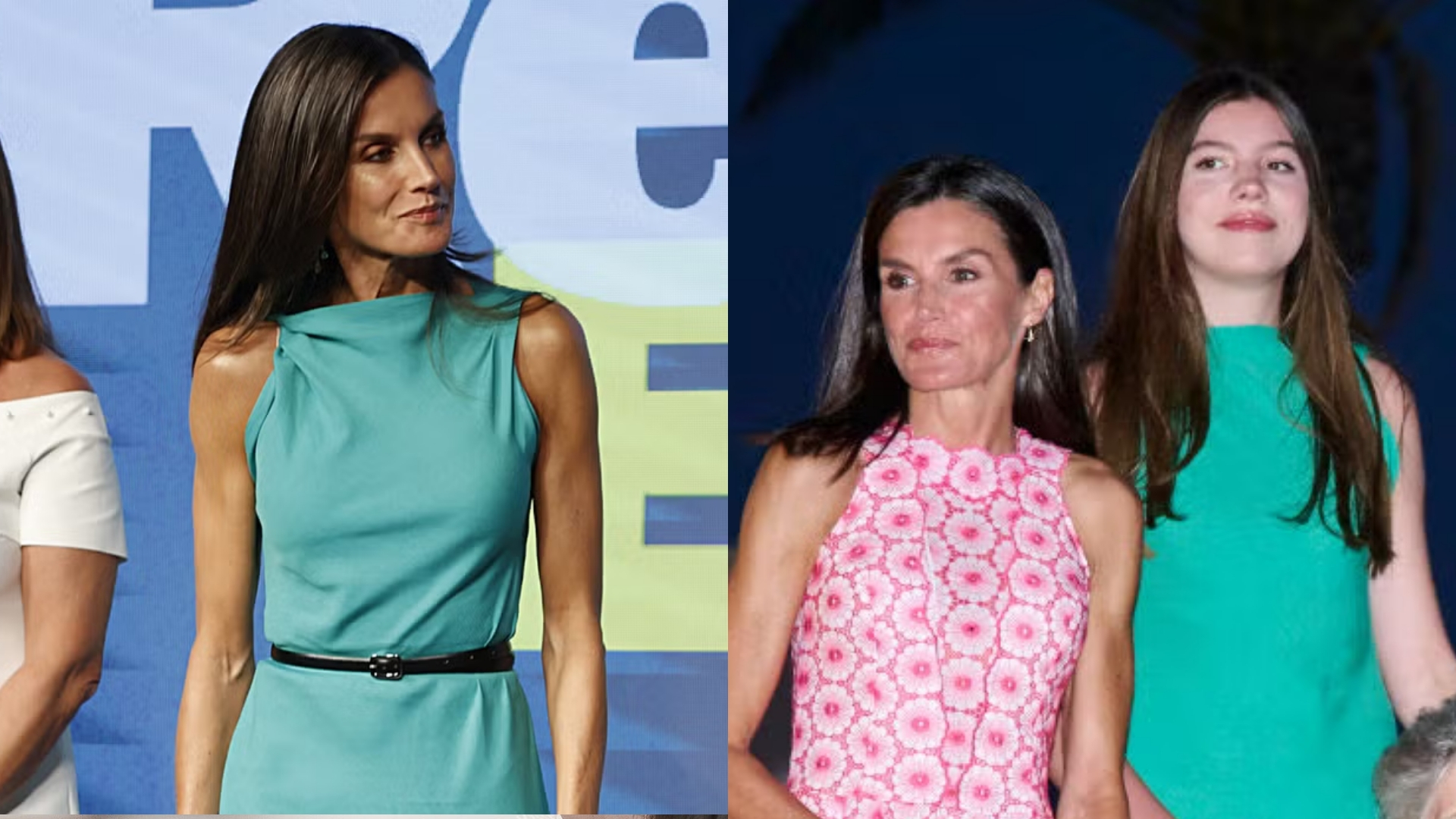 Aunque en las fotografías parecen vestidos diferentes, son los mismos pero cada una ha optado por darle su estilo personal. La Reina Letizia lo llevó en los Premios Retina Eco 2023. Es un vestido vestido de color turquesa de Zara, sin mangas, corte recto y aperturas laterales. La infanta, dándole un toque más juvenil, le quitó el cinturón, y lo llevó suelto en sus vacaciones en Palma de Mallorca.