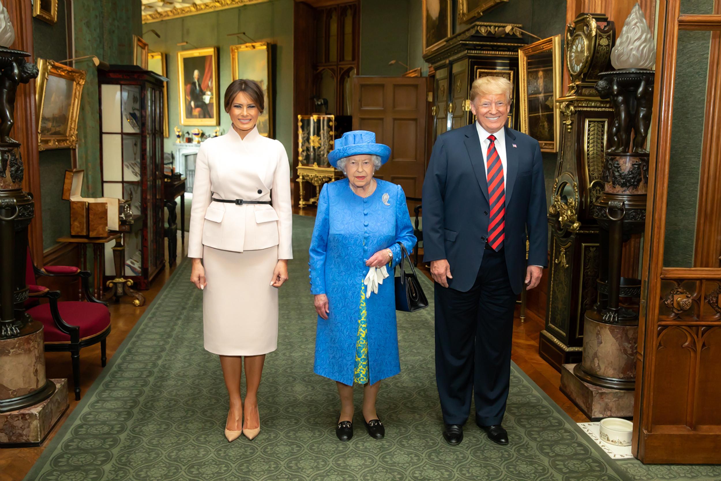 En junio de 2019 Donald y Melania Trump regresaron a Reino Unido donde acudieron al Palacio de Buckingham con toda la familia. Una visita que contó incluso con la presencia de los príncipes Andrés y Harry. Isabel II llevó la tiara de rubies de Birmania, unas piedras preciosas que, según la cultura birmana, protegen del mal y que algunos vieron como un mensaje subliminal de la reina, después de que Trump, en 2018, pasara por delante de ella revisando las tropas.