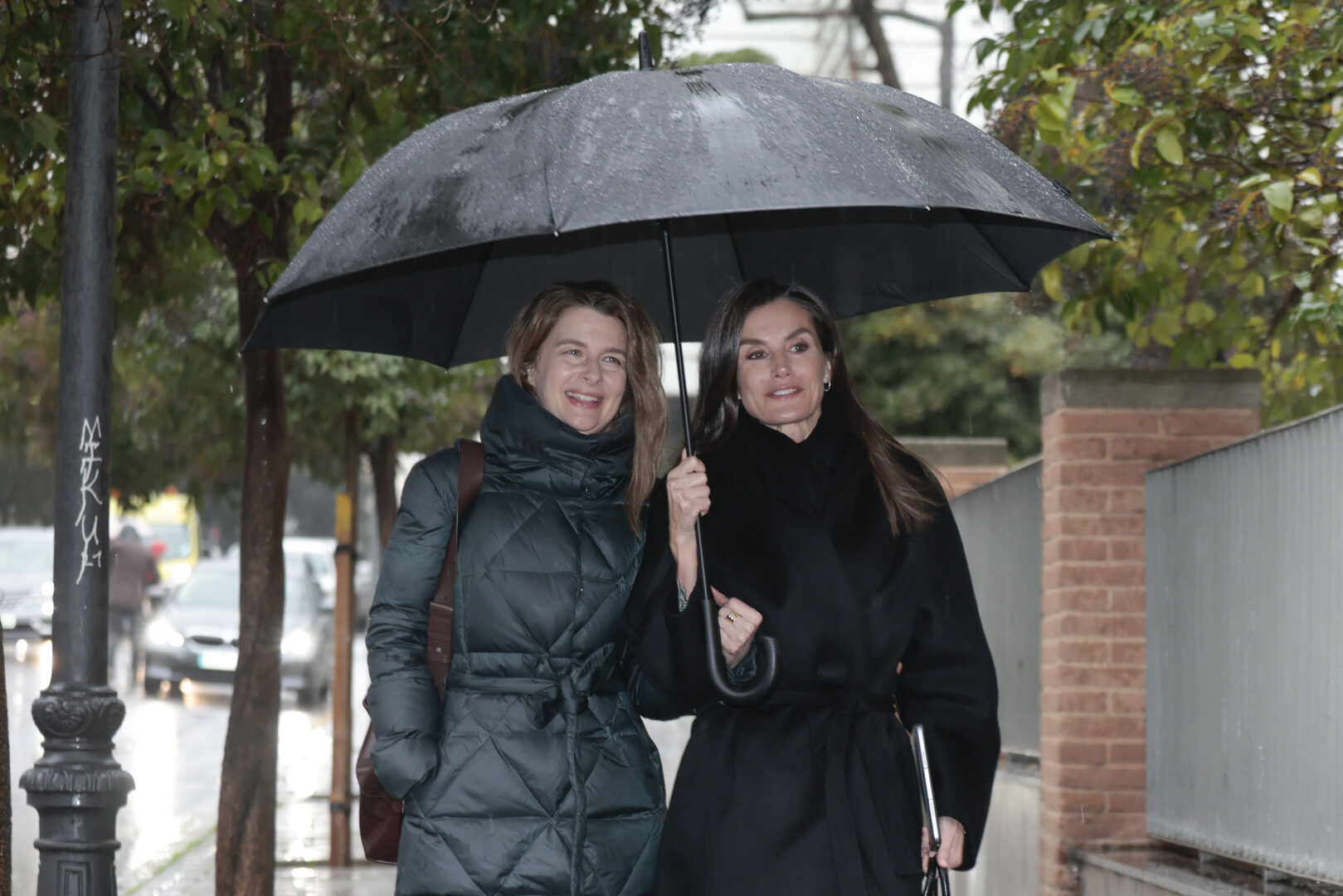 Doña Letizia llegó al acto acompañada de la Secretaria de la Reina, María Dolores Ocaña, su mano derecha en el cargo desde la primavera de 2024. Ambas se resguardaron de la intensa lluvia que cae en Madrid estos días con un paraguas sujetado por la Reina y posaron ante los reporteros gráficos con una gran sonrisa antes de saludar a Juan Carrión Tudela, presidente de FEDER.