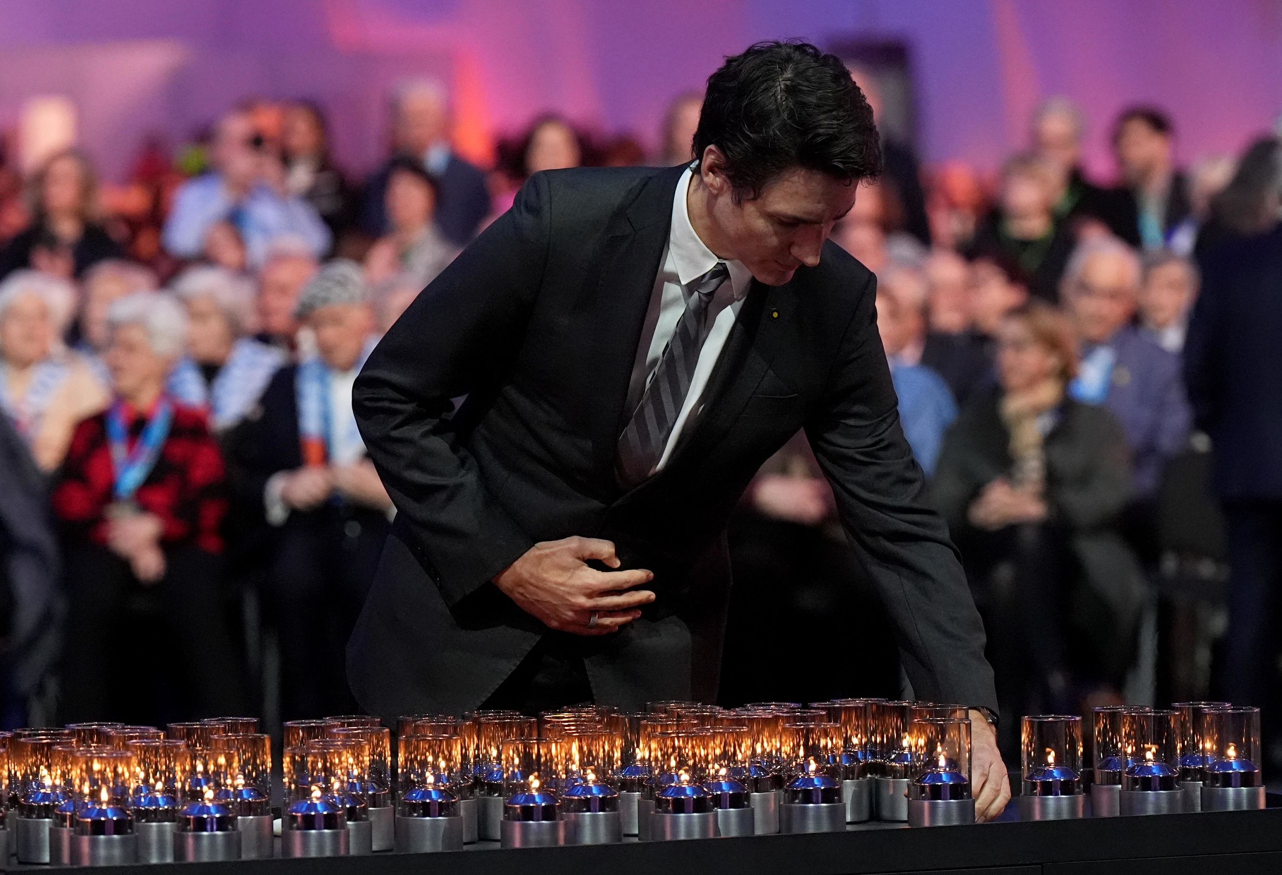 El primer ministro canadiense Justin Trudeau en el momento de la ofrenda de una vela que han realizado todos los Jefes de Estado asistentes.