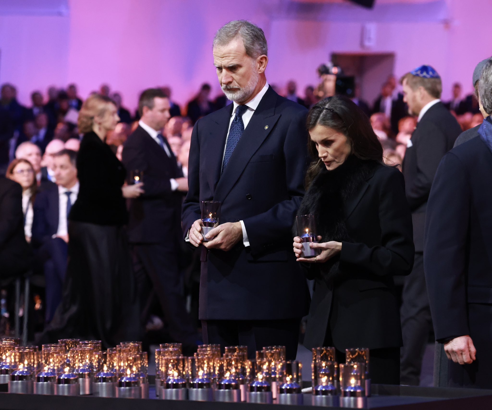 Los Reyes han asistido a la conmemoración del 80º aniversario de la liberación del campo de concentración y exterminio de Auschwitz-Birkenau (Polonia), coincidiendo con el “Día Internacional de Conmemoración Anual en Memoria de las Víctimas del Holocausto”. Los Reyes, al igual que el resto de invitados, han vestido de riguroso luto, La Reina Letizia, a diferencia de las otras reinas asistentes, no ha llevado tocado.
