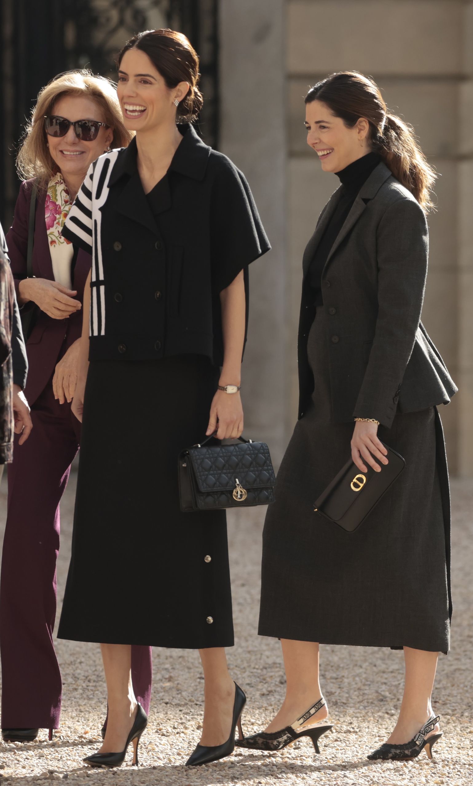 También los duques de Huéscar Fernando Fitz-James y Sofía Palazuelo, con un deslumbrante vestido fluido de manga corta tipo murciélago en negro con pespunte en blanco y cartera de Dior. Junto a ellos, los condes de Osorno, Carlos Fitz-James y Belén Corsini, que embarazada de su segundo hijo presumió de barriguita con un impecable traje de falda de talle alto en color gris marengo, zapatos y bolso de Dior. La elección de sus estilismos de la Maison francesa es porque Dior es uno de los patrocinadores de la muestra.