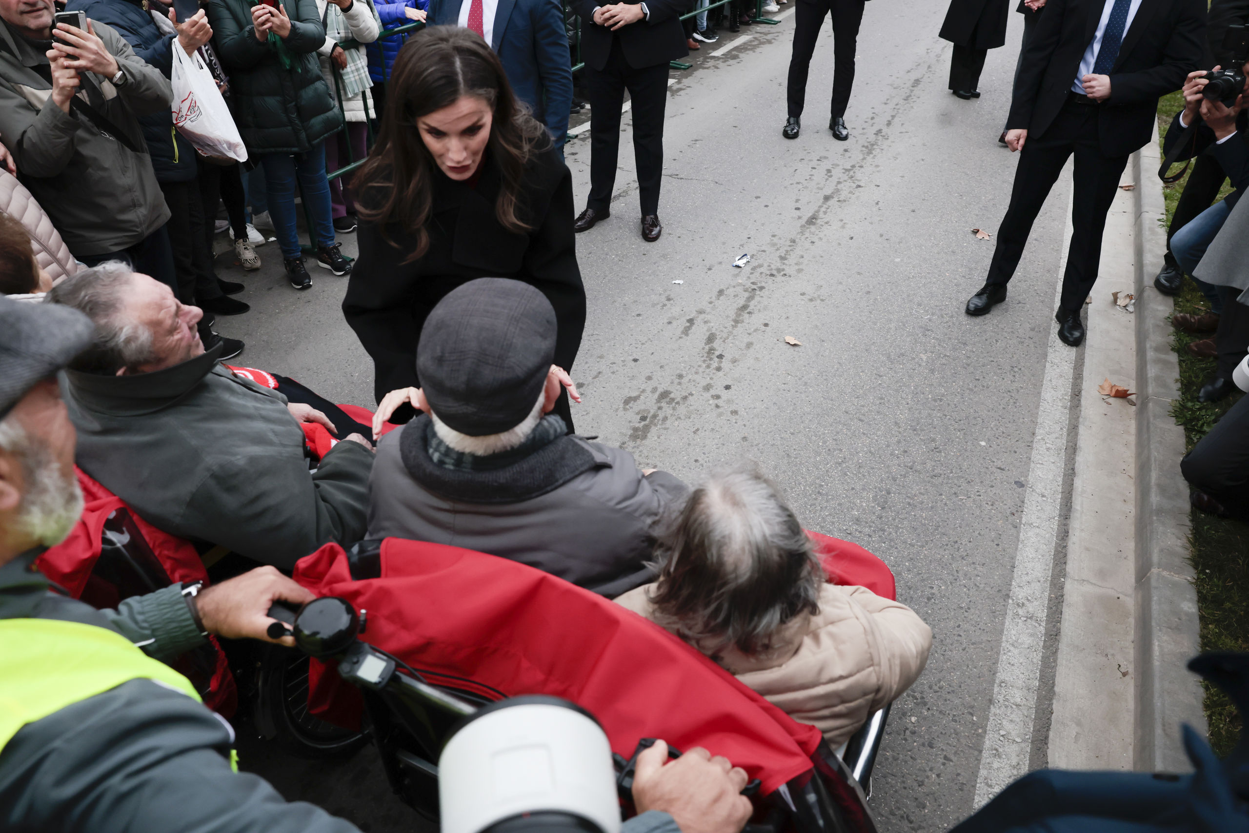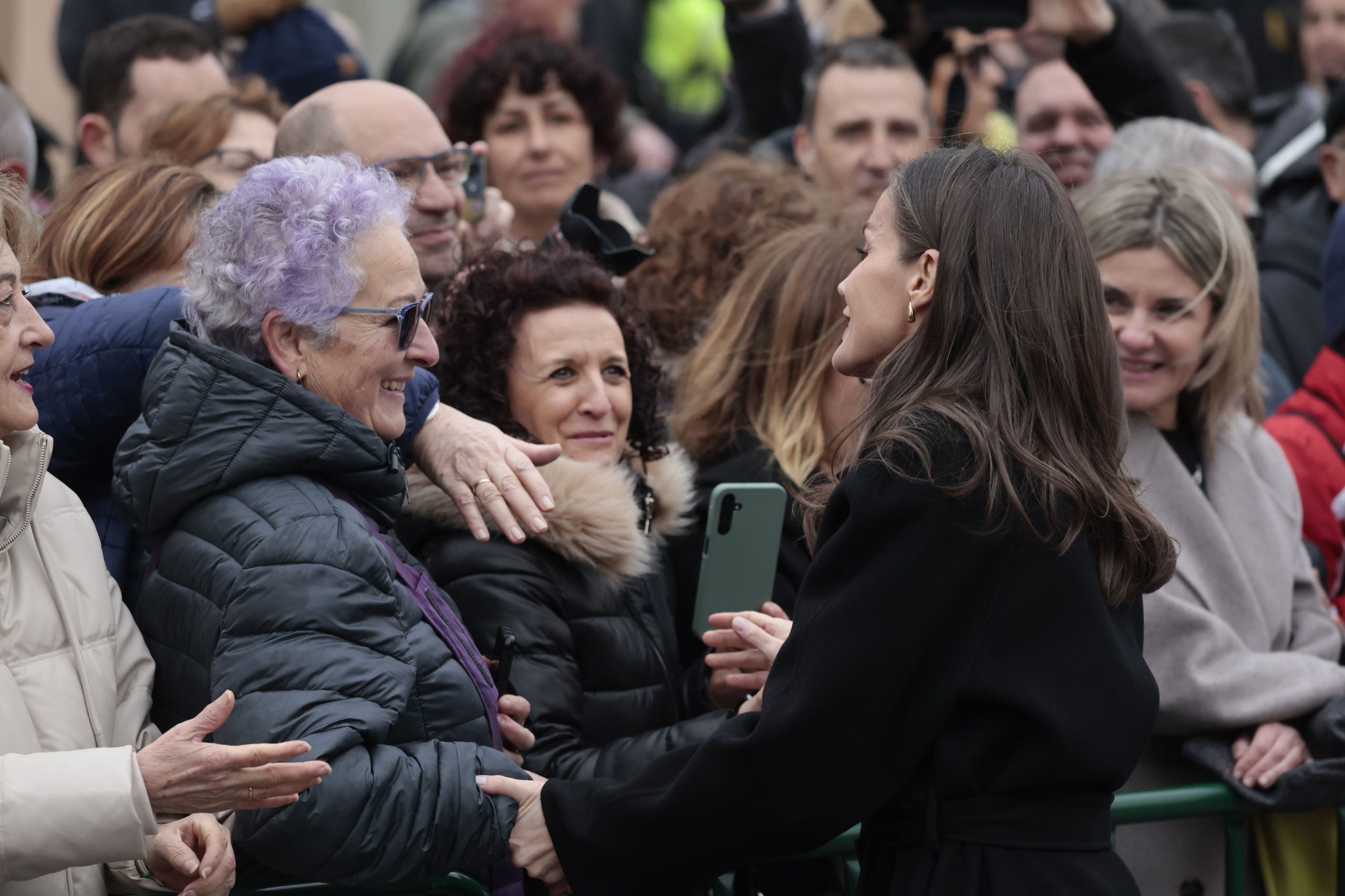 La Reina se mostró muy atenta y simpática con todos los vecinos, especialmente con algunos mayores que aguardaron en primera fila para saludarla.