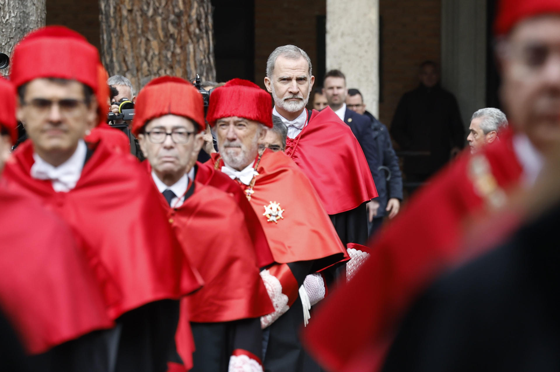 Don Felipe y Doña Letizia han acudido a la Universidad de Alcalá, donde acuden anualmente cada 23 de abril para entregar el Premio Cervantes, para un acto muy especial por la que se convierte en la primera universidad española en otorgarle este reconocimiento al monarca tras haber sido investido doctor por la Università degli Studi di Napoli Federico II durante la visita de Estado que Sus Majestades realizaron a Italia.