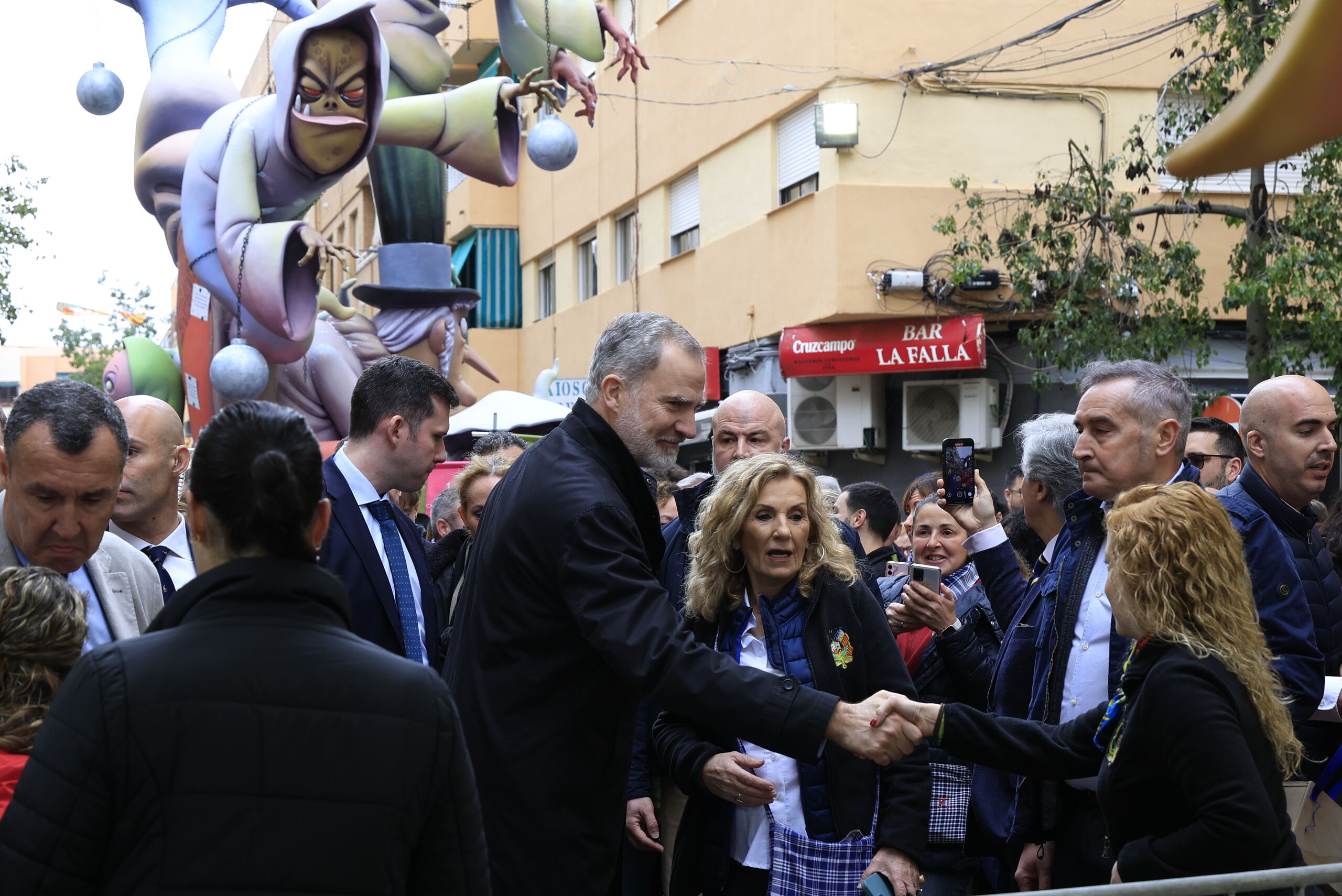 Don Felipe ha sido recibido aplausos por los vecinos, falleros y visitantes, donde ha escuchado "vivas el Rey" durante su paseo por las calles de Torrent.