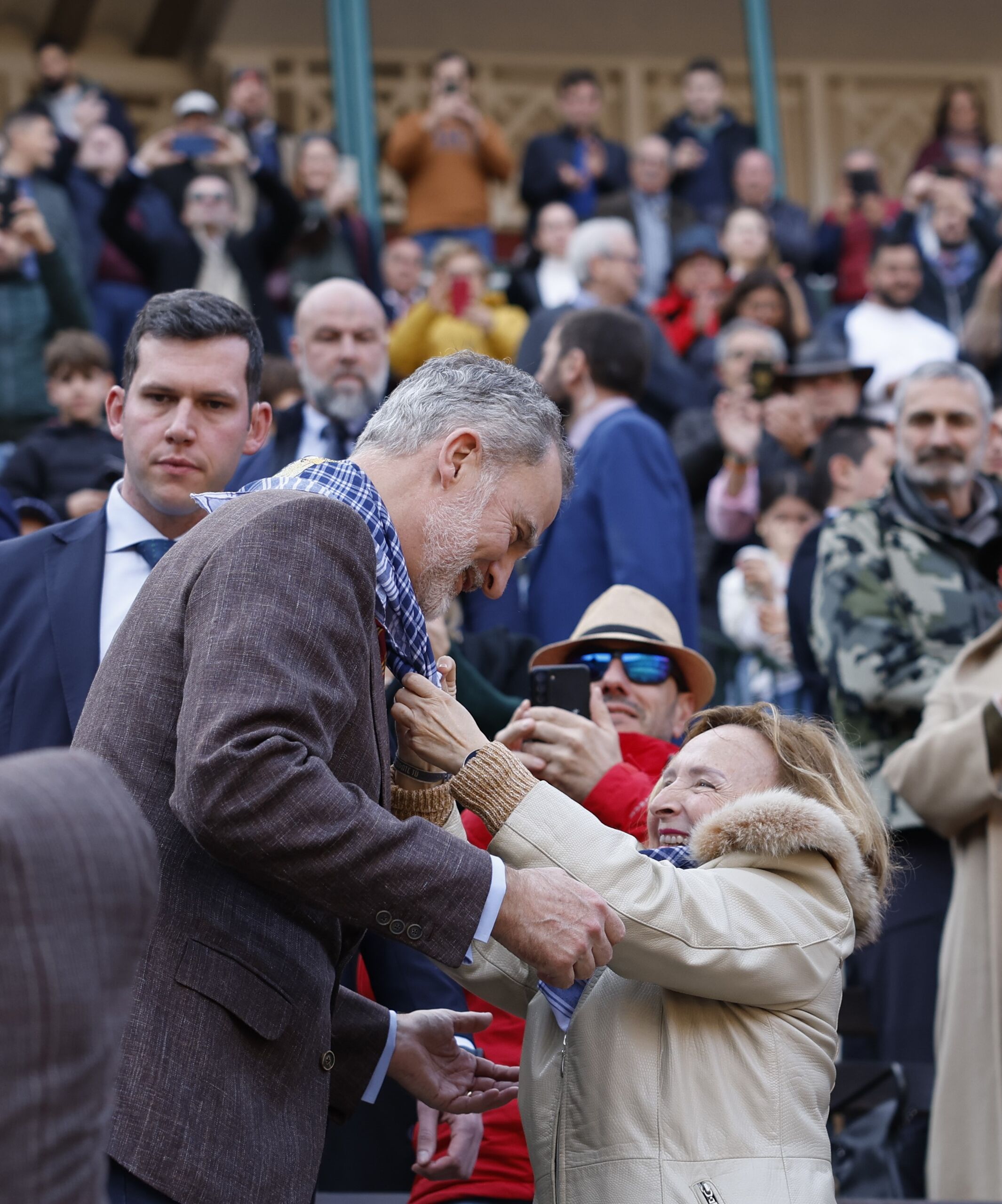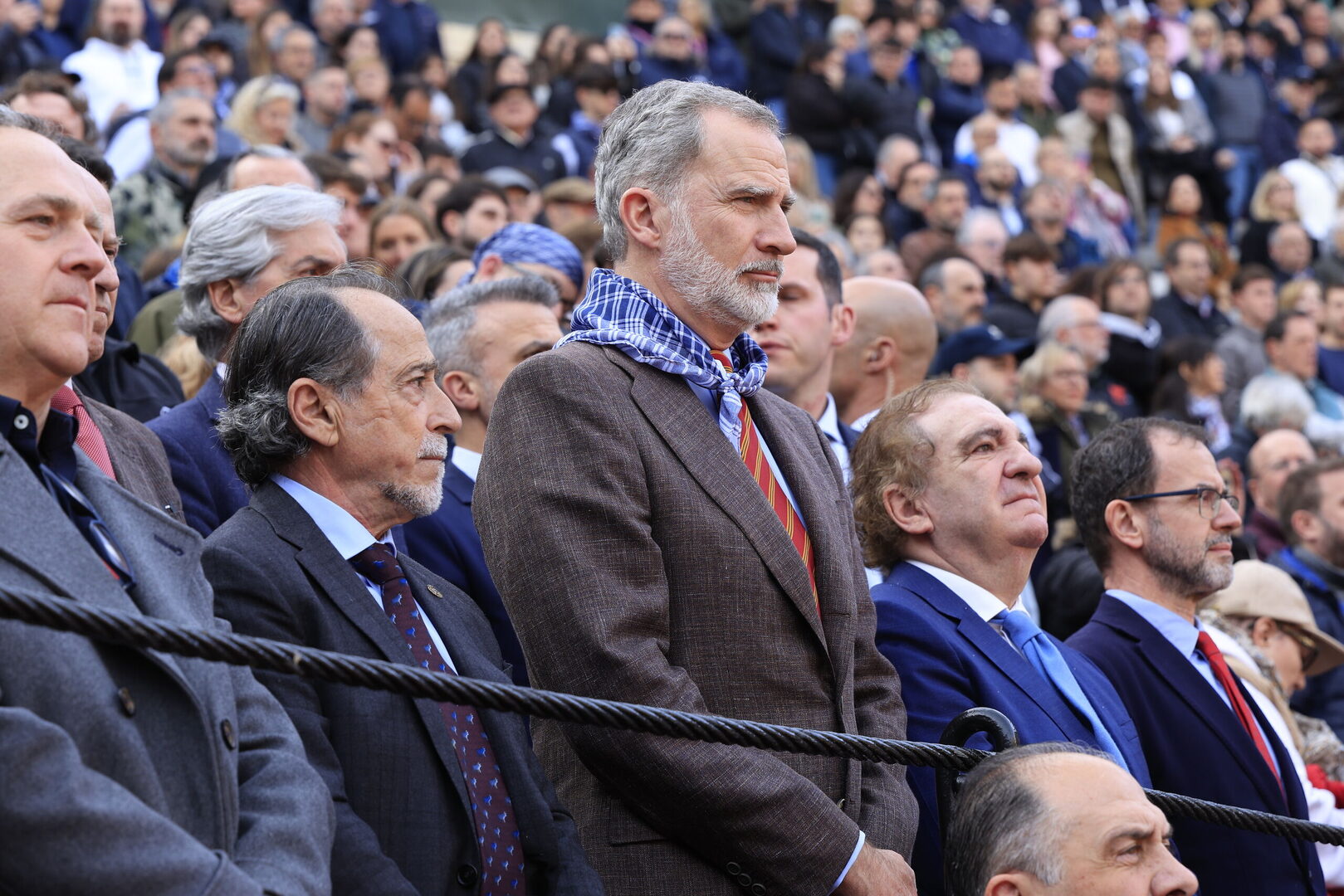 El Rey ha estado acompañado en la barrera por el maestro Luis Francisco Esplá, como asesor taurino y a su lado el ganadero y presidente de la Real Unión Criadores de Toros De Lidia, Antonio Bañuelos.
