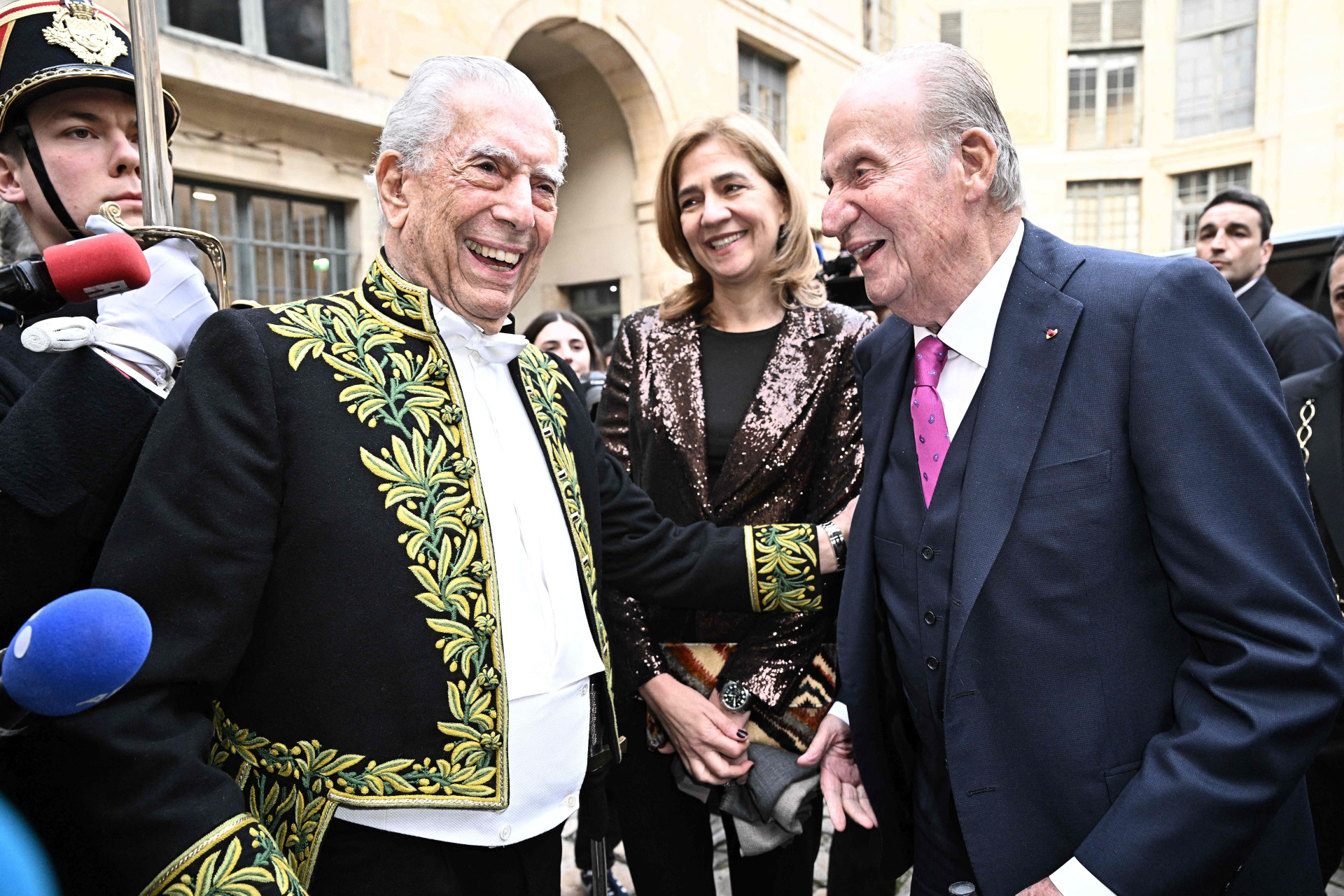 Cuando Mario Vargas Llosa ingresó en la Academia Francesa, una de las instituciones más prestigiosas del mundo en febrero de 2023, invitó personalmente al rey Juan Carlos, a la que acudió acompañado de la infanta Cristina. En aquella ocasión, el escritor manifestó: "En la medida en que los reyes puedan tener amigos, yo soy un amigo de él", afirmó el escritor peruano, quien añadía: "Siempre ha sido muy cariñoso conmigo. En las recepciones, en actos oficiales… Así que yo pensé que, como está de capa caída, de repente esta invitación le venía bien".