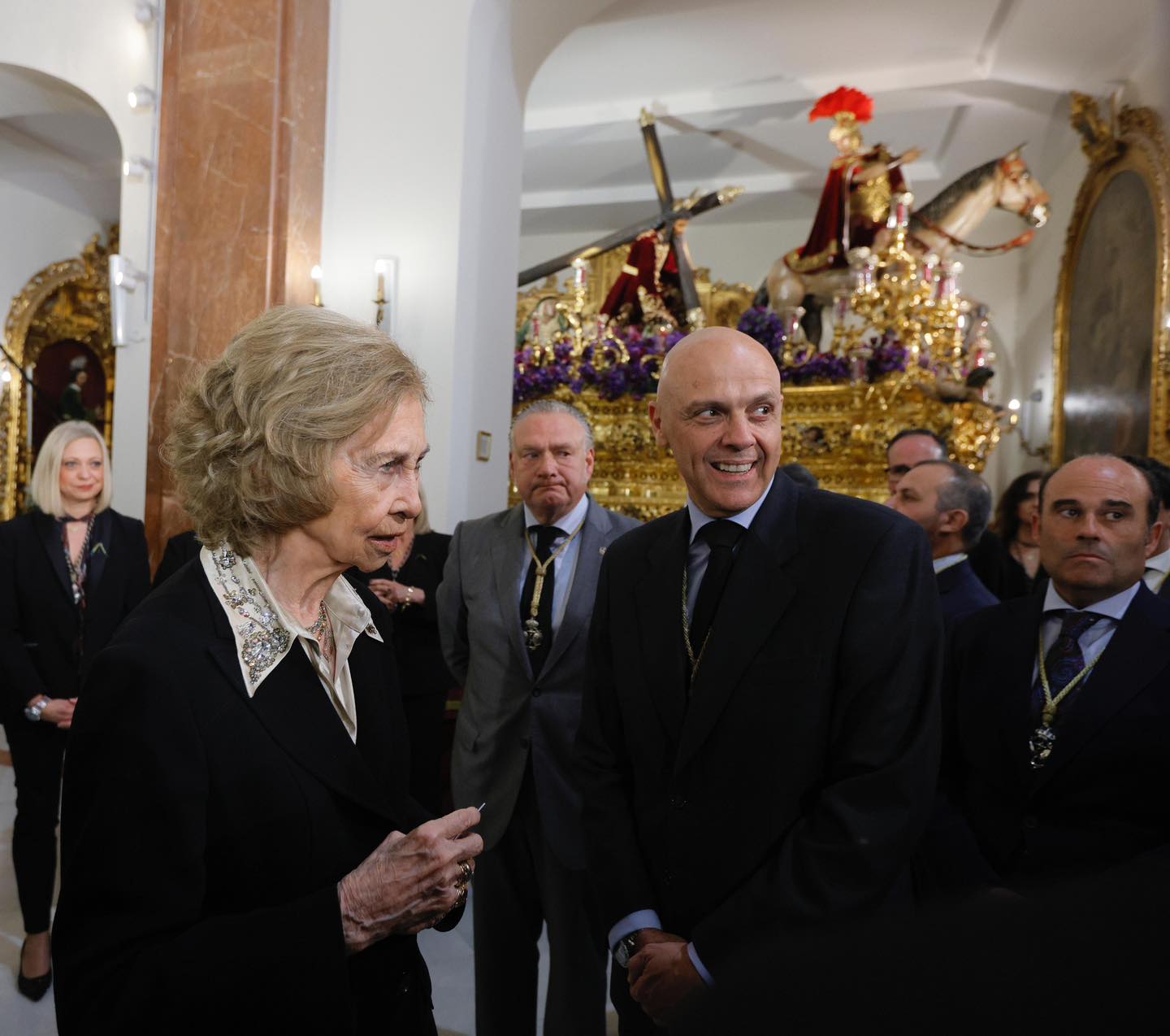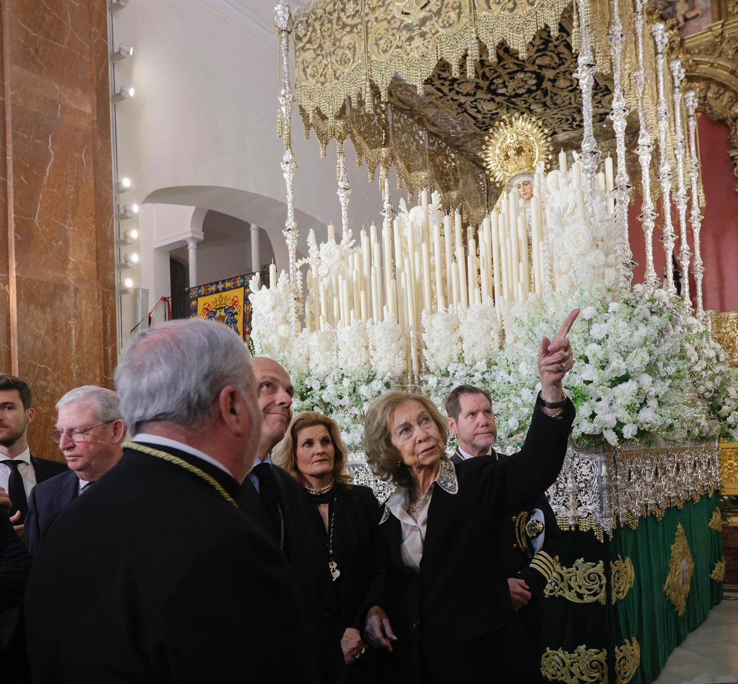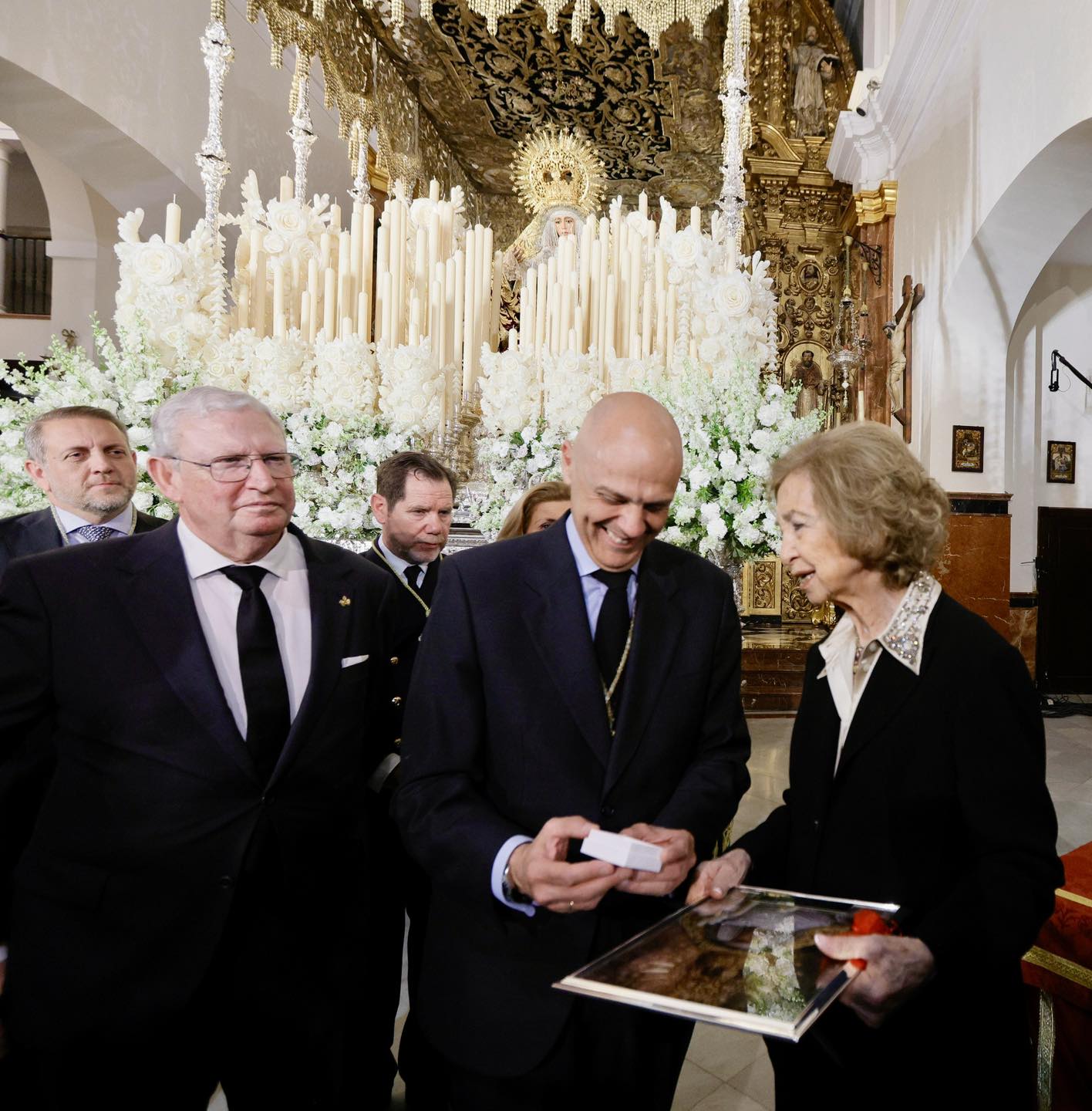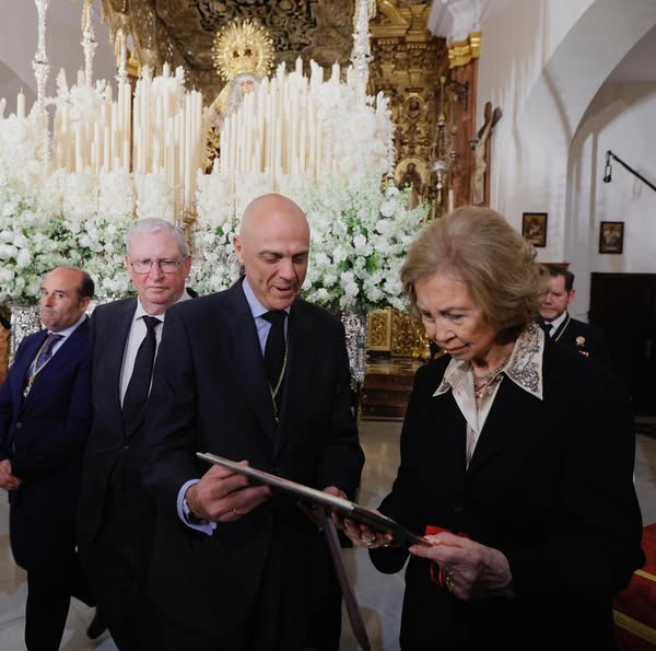 Doña Sofía realizó un recorrido por varios puntos de la capital hispalense para visitar los templos del centro histórico. Antes de su encuentro con la Hermandad de los Gitanos, fue recibida en la por la parroquia de Santa María Magdalena, donde estuvo acompañada por el titular de la Hermandad de la Quinta Angustia, tal y como detalló El diario de Sevilla.