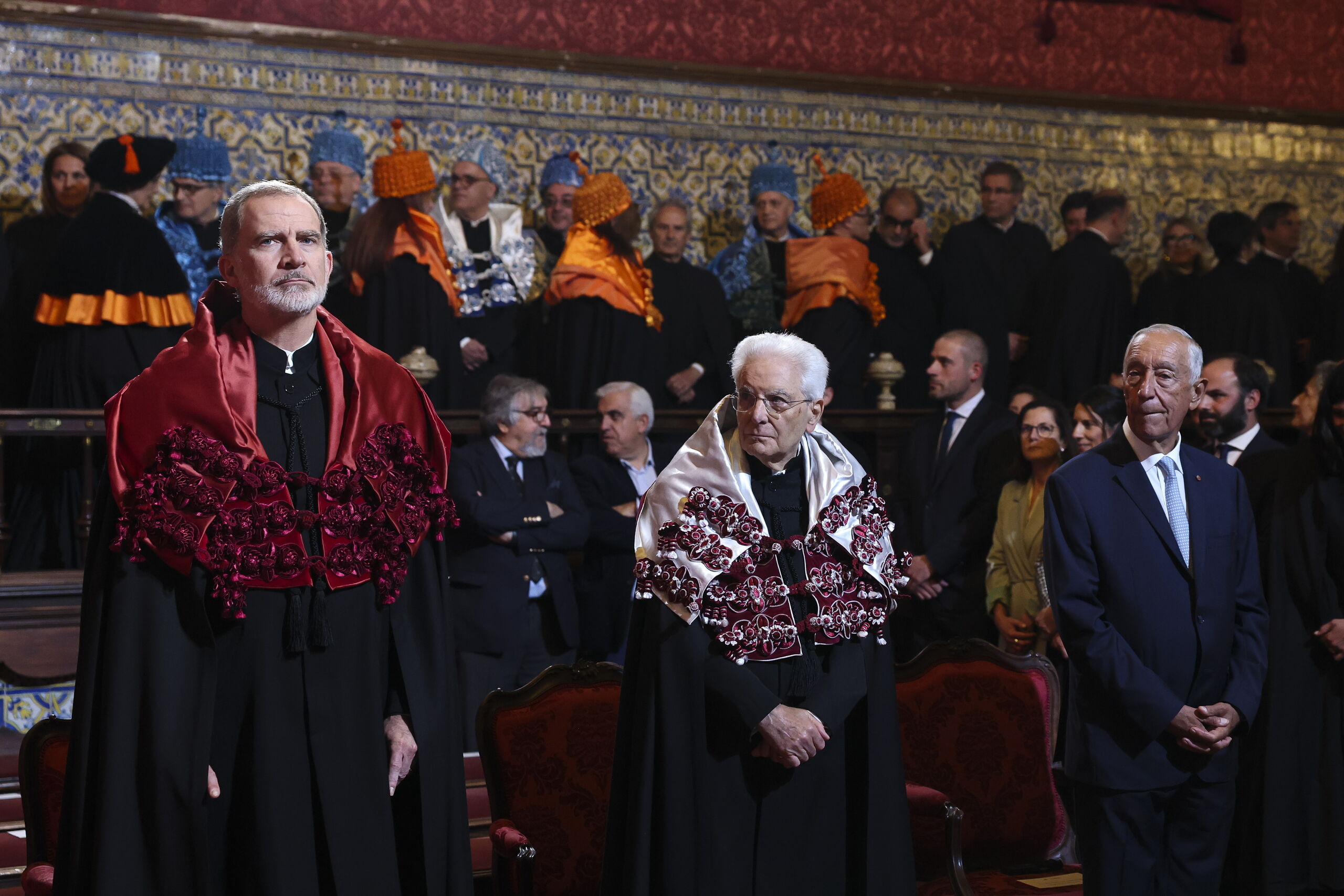 Felipe VI ha sido investido Doctor Honoris Causa en Derecho por la Universidad de Coimbra, una institución con 700 años de antigüedad, en una ceremonia conjunta con el presidente de la República Italiana, Sergio Mattarella, que recibe su doctorado Honoris Causa en Economía, en reconocimiento a su contribución a la innovación. Un reconocimiento que también obtuvo el rey Juan Carlos en mayo de 1989.