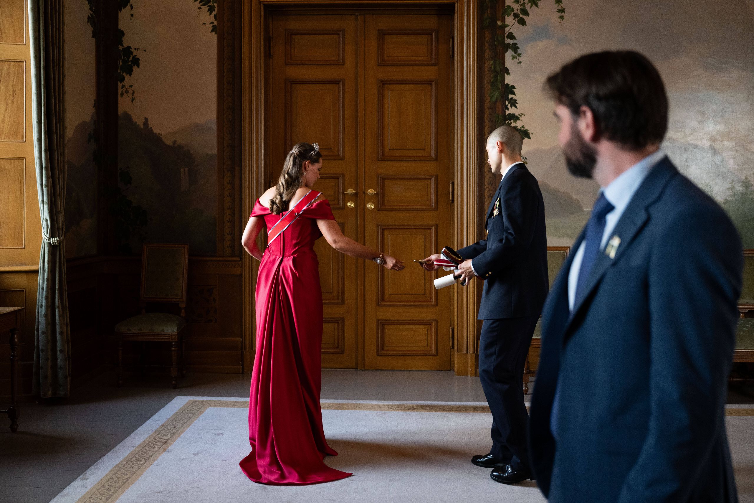 Durante la recepción, la protagonista indiscutible fue la princesa Ingrid Alexandra, hija mayor de los reyes Haakon y Mette Marit de Noruega y heredera al trono.