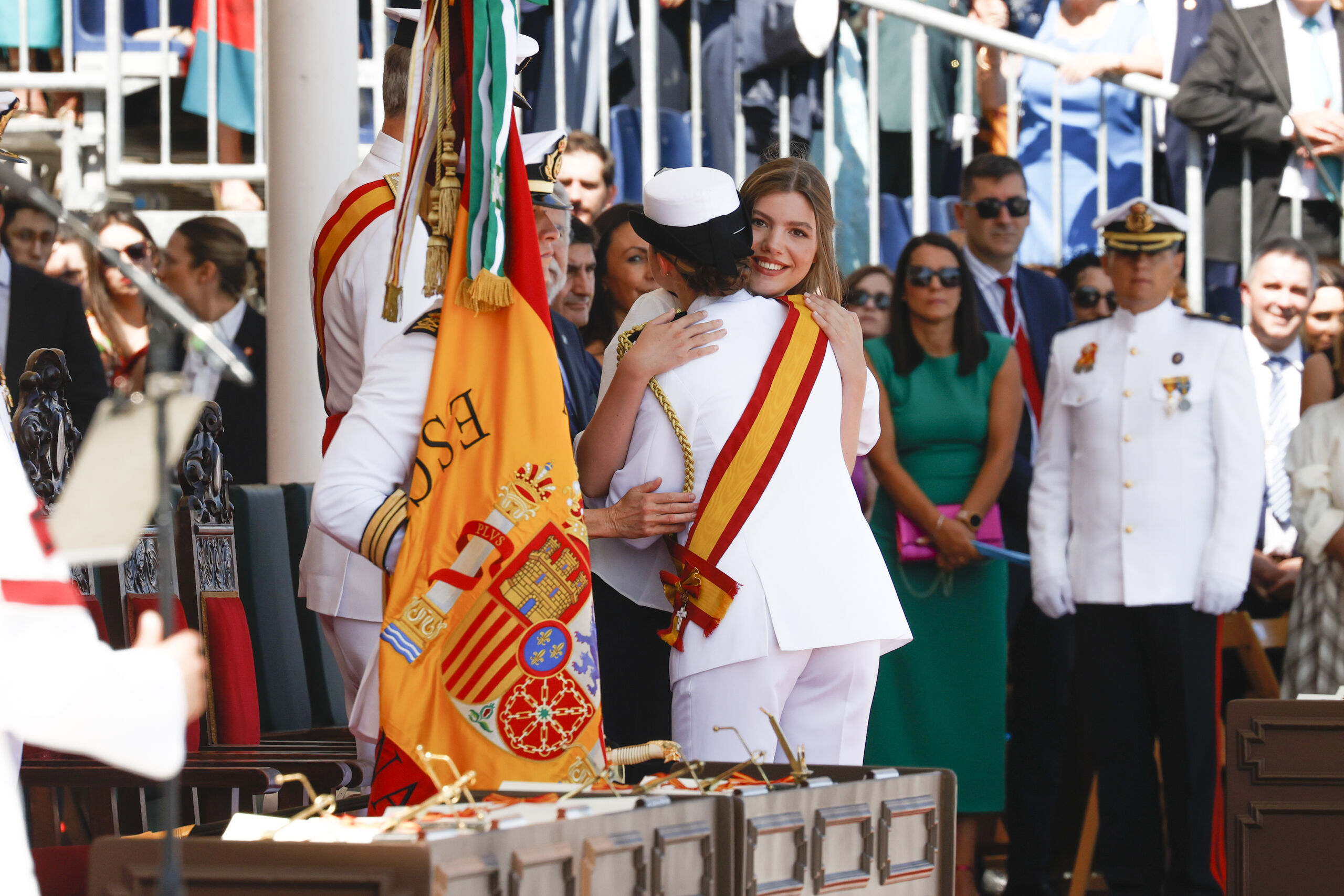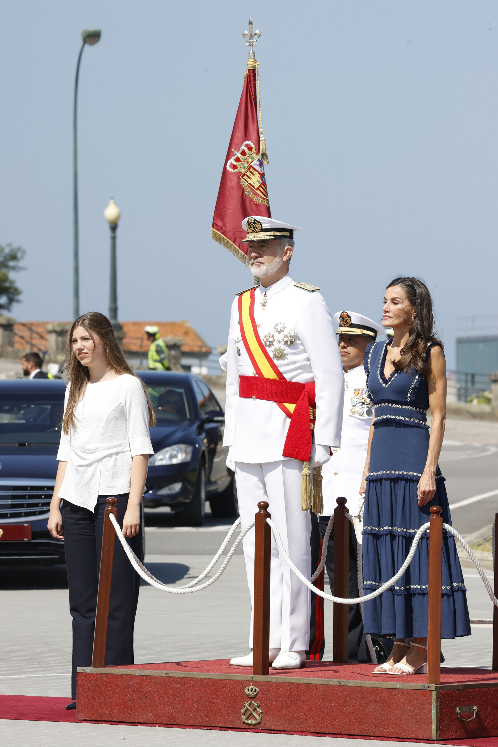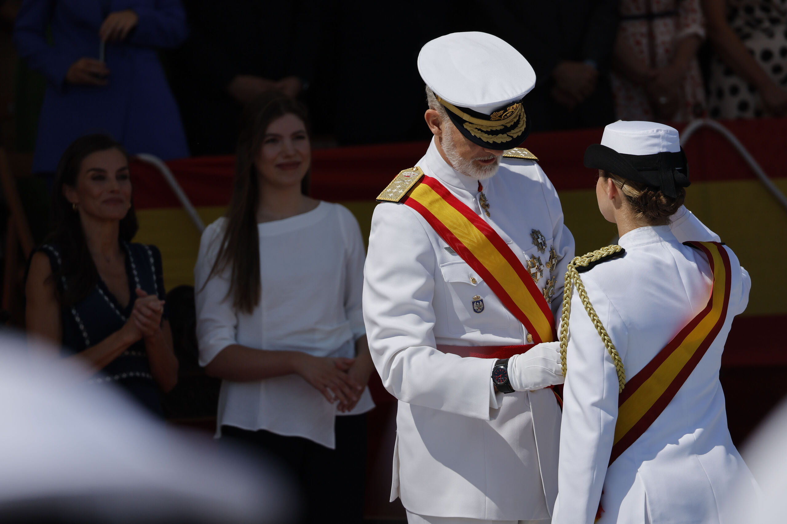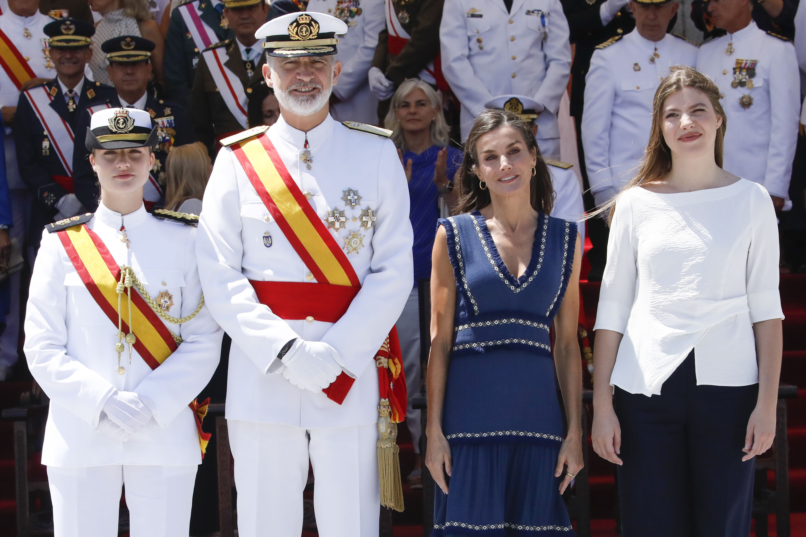 Felipe VI y la reina Letizia, acompañados por la infanta Sofía, presidieron el acto de juramento ante la Bandera de los guardamarina y el acto de entrega de Reales Despachos a los nuevos oficiales de la Armada. Además, Felipe VI impuso a la princesa Leonor la Gran Cruz del Mérito Naval tras finalizar su etapa de formación en la Armada.