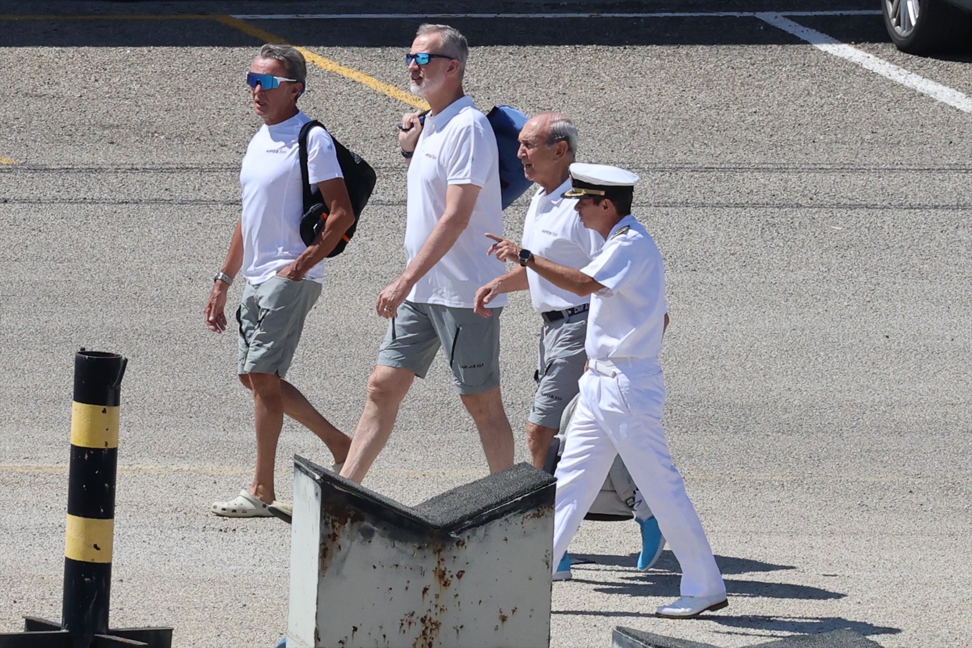 Este entrenamiento supone la primera aparición pública de Felipe VI durante las vacaciones estivales de la Familia Real en la capital balear. El monarca ha llegado en coche particular en torno a las 12:00 horas del mediodía, accediendo directamente a la zona militar del puerto, donde ha embarcado en el Aifos para tomar parte en las actividades previas a la competición.