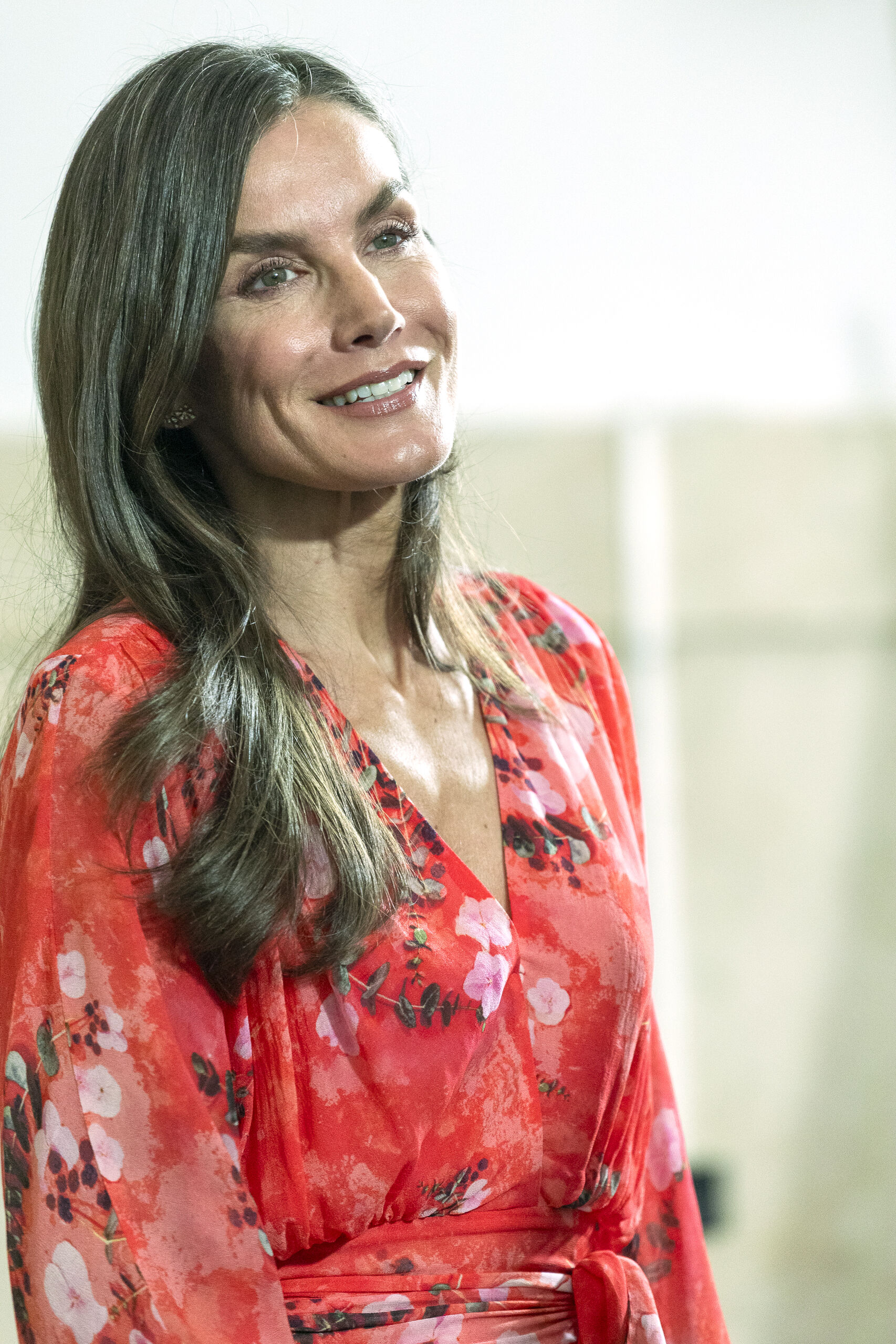 Para la ocasión, doña Letizia ha apostado por uno de sus estilismos veraniegos más reconocibles: un vestido de gasa y estampado floral, firmado por Adolfo Domínguez, que ya ha lucido en citas anteriores y se ha convertido en un clásico de su armario.