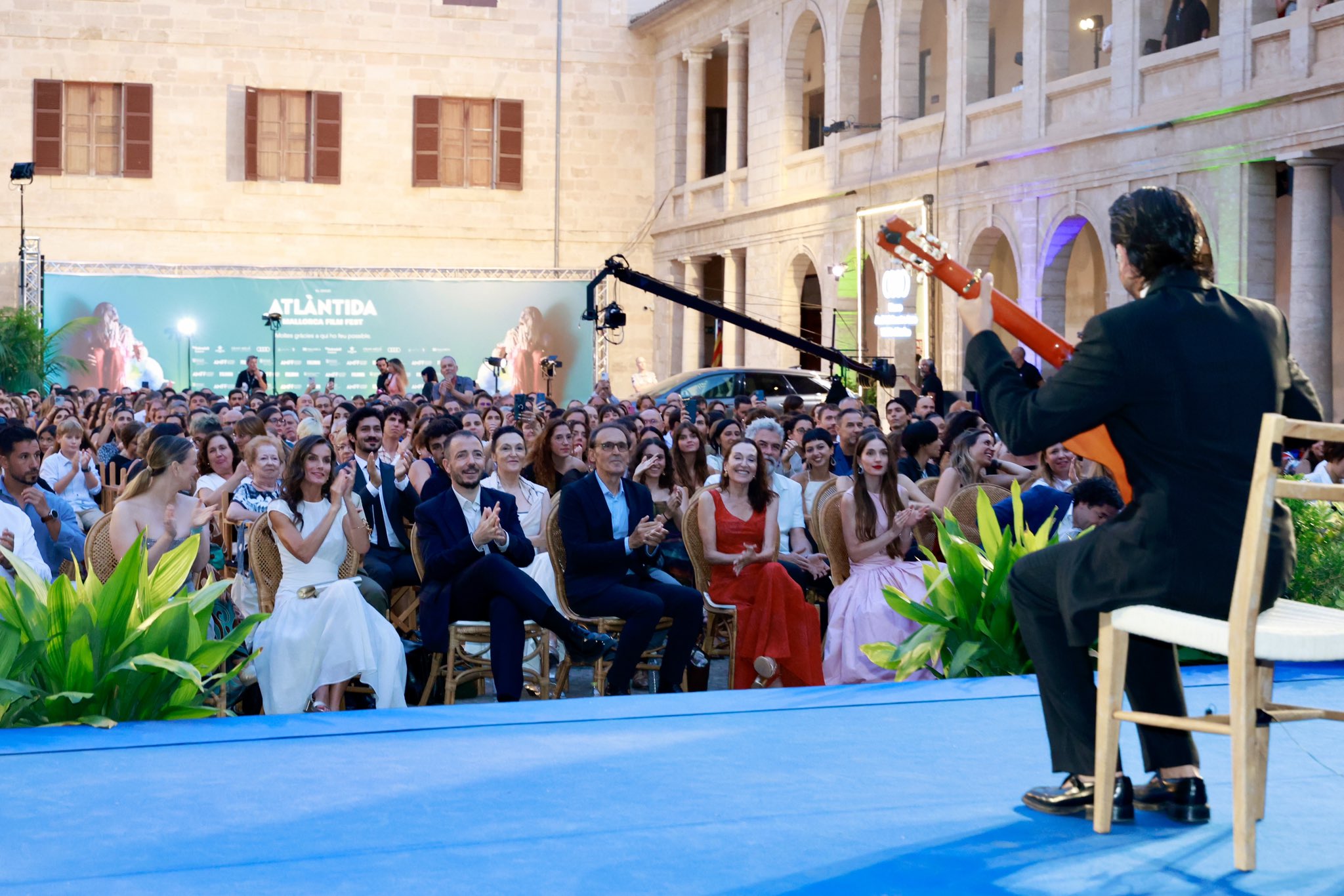 La Reina Letizia ha presidido la clausura del Atàntida Film Fest, un festival que nació hace 15 años y cuya clausura se celebra en el patio de La Misericordia. Una de las actuaciones de la noche, ha sido la gel guitarrista Yerai Cortés.
