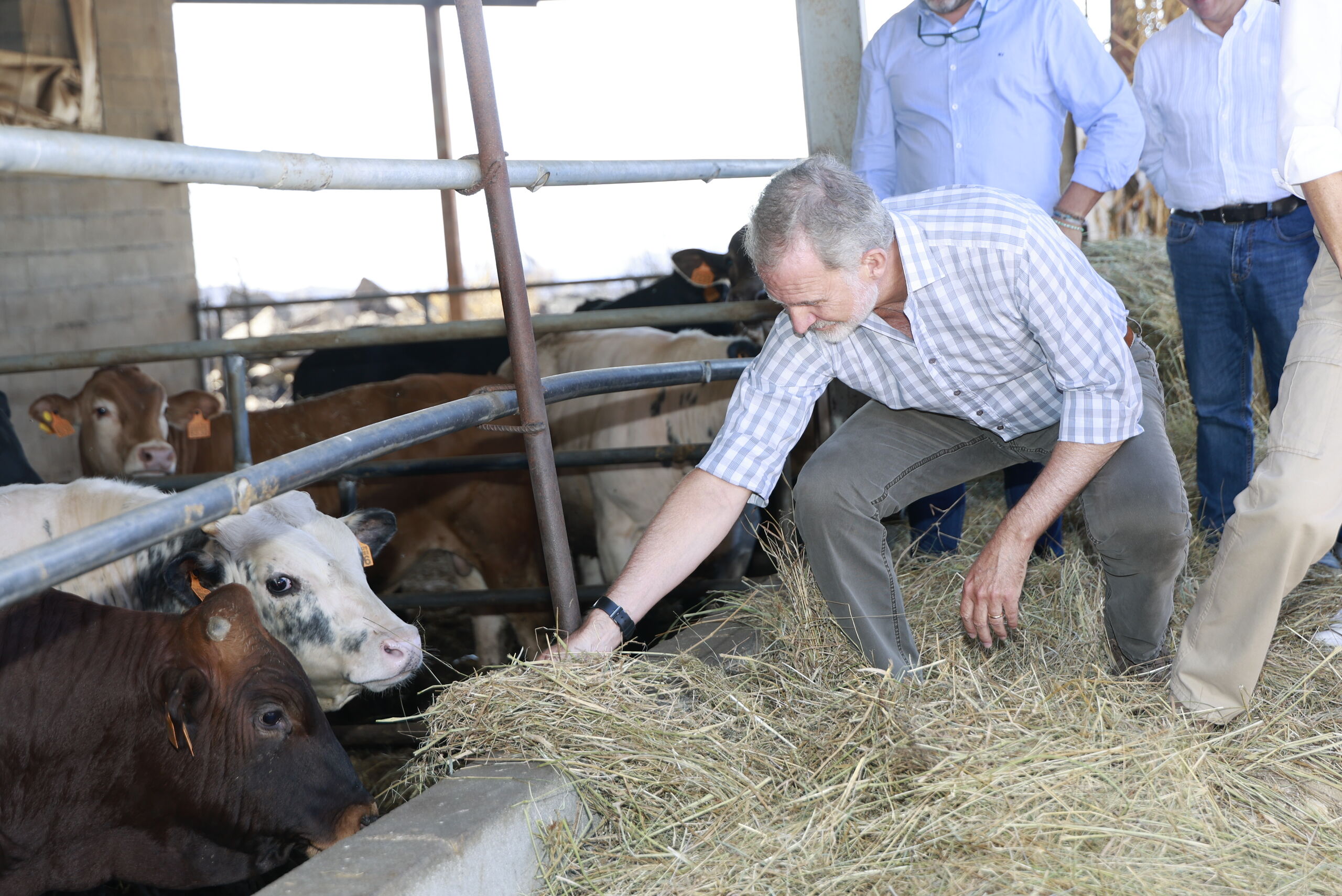 Don Felipe no ha dudado en dar de comer a los animales de la explotación agrícola.