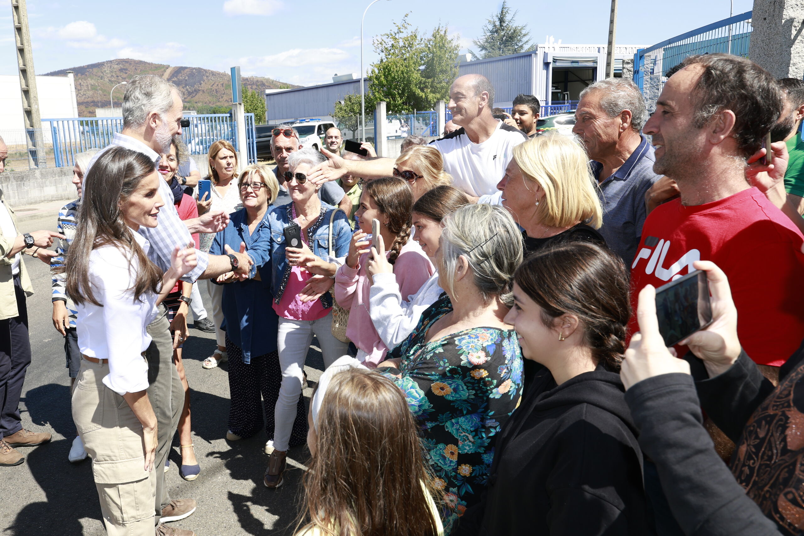 Don Felipe y Doña Letizia mostrando su agradecimiento a todos los equipos que han contribuido a combatir el fuego y proteger a la población.