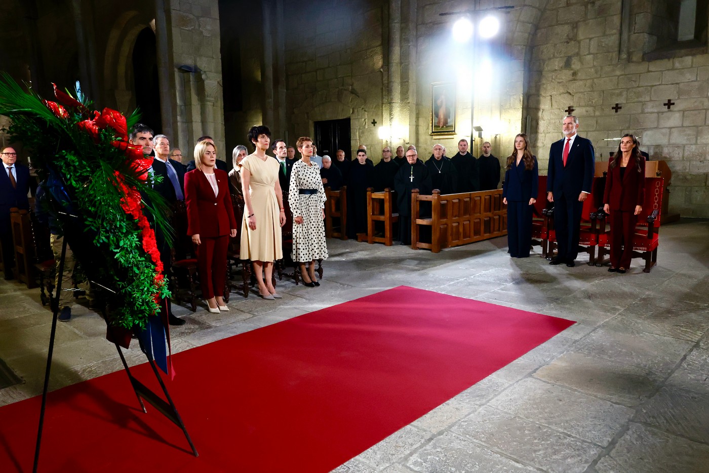 Don Felipe y Doña Letizia acompañados de la Princesa de Asturias y de Viana ocuparon su lugar frente al Panteón Real de los primeros Reyes de Navarra, al acorde del Himno Nacional, que hacía 10 años que no se escuchaba en el Monasterio.
