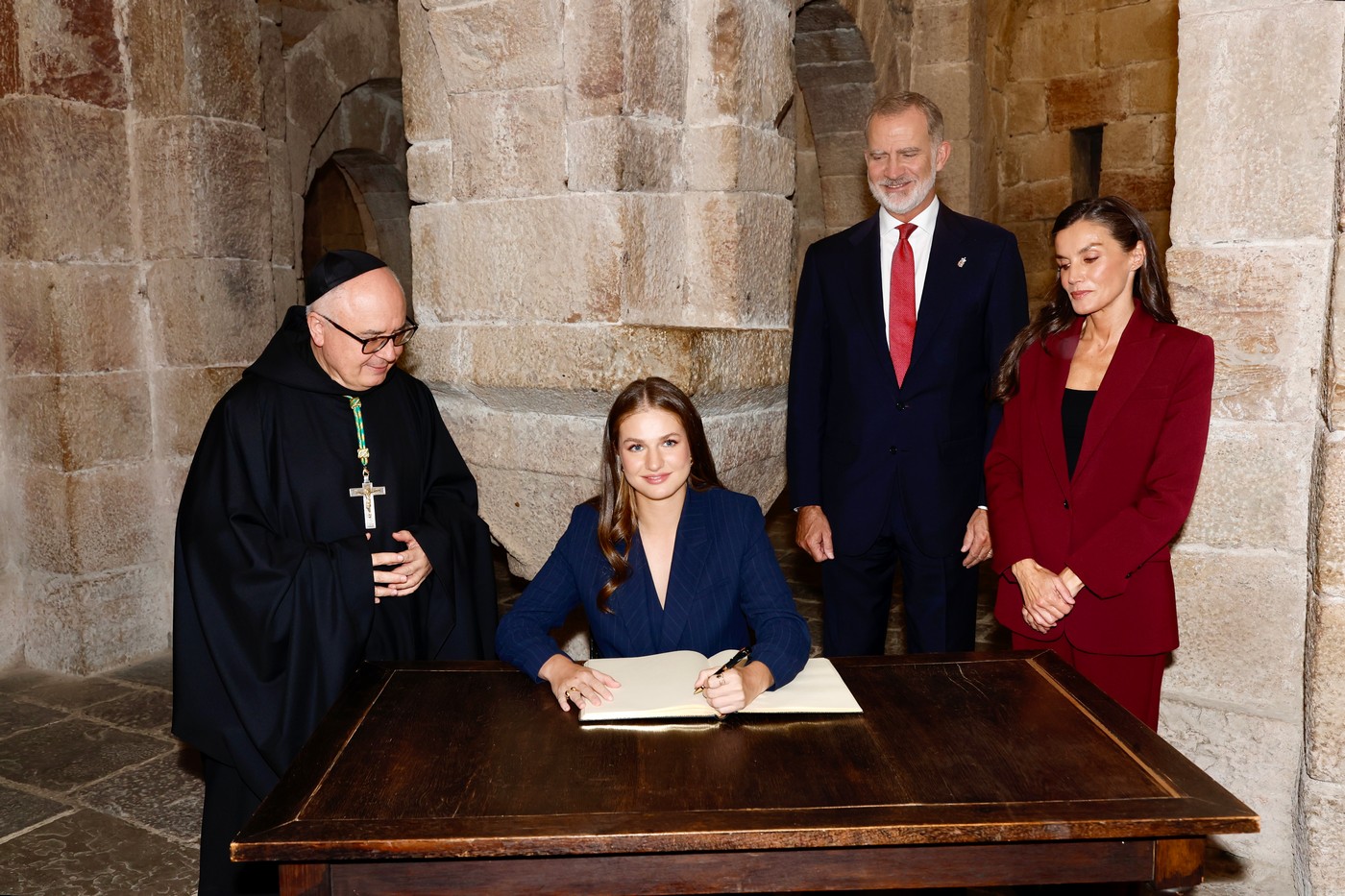 La Princesa Leonor firmó en el Libro de Honor del Monasterio de San Salvador de Leyre. Posteriormente los monjes regalaron a los Reyes y la Princesa un libro y una botella de licor de hierbas y una de ginebra elaborada por los monjes.