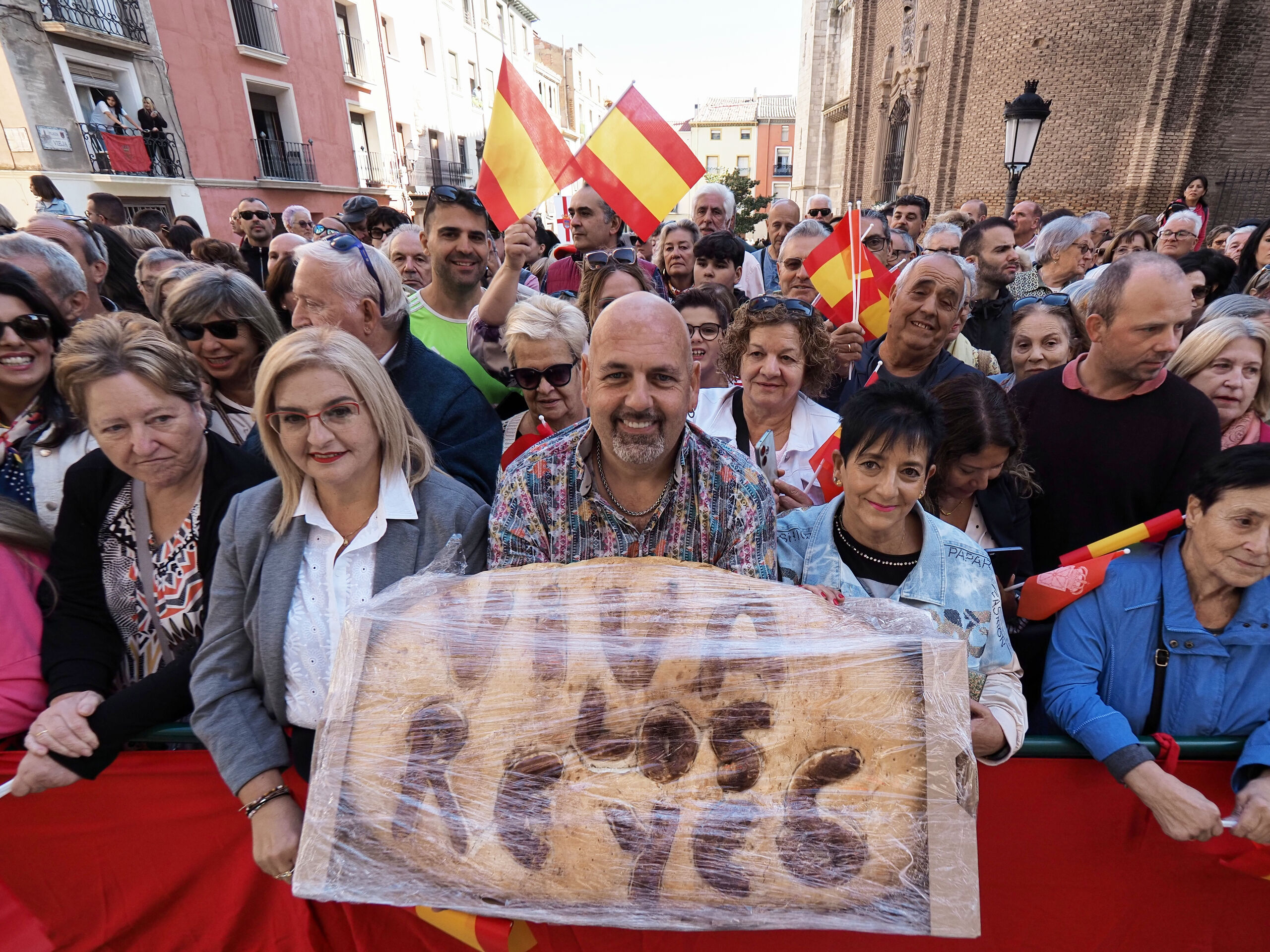 Entre el público se encontraba Alfonso Baigorri, propietario de una panadería en Ablitas. y que cada año, cuando los Reina visita Tudela para la Muestra de Cine de la localidad, Baigorri le entrega una gran hogaza de pan decorada. En esta ocasión, ha horneado una de 9 kilos, que ha entregado en persona al Rey.