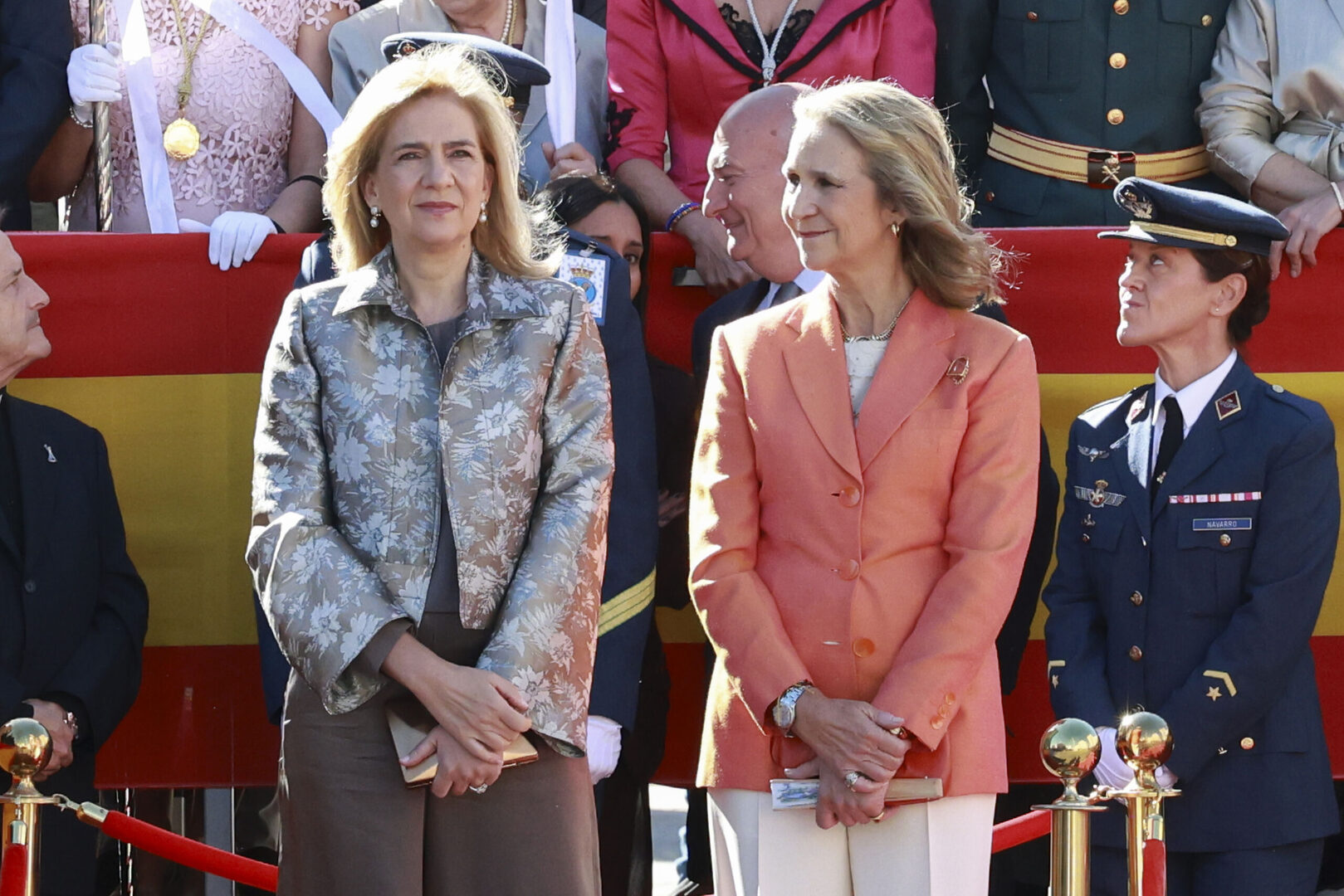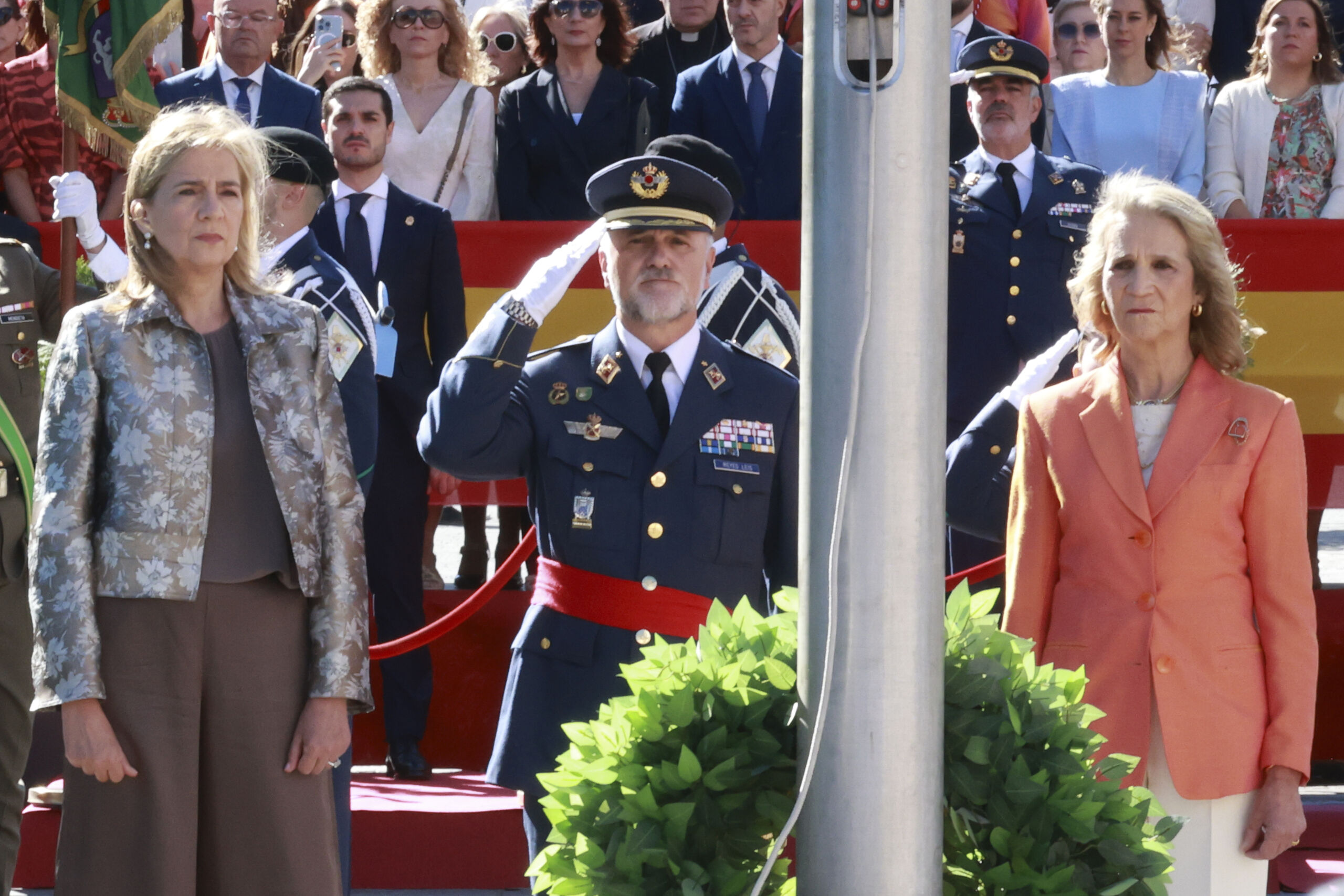 Las infantas Elena y Cristina han estado este domingo en Torrejón de Ardoz en un acto de Homenaje a la Bandera, que se ha celebrado con motivo de las fiestas patronales del municipio madrileño, donde han mostrado su apoyo a las Fuerzas Armadas. Una celebración que ha comenzado en la Plaza de España con un desfile aéreo y terrestre de unidades militares, Guardia Civil, Policía Nacional, Policía Local y Protección Civil.