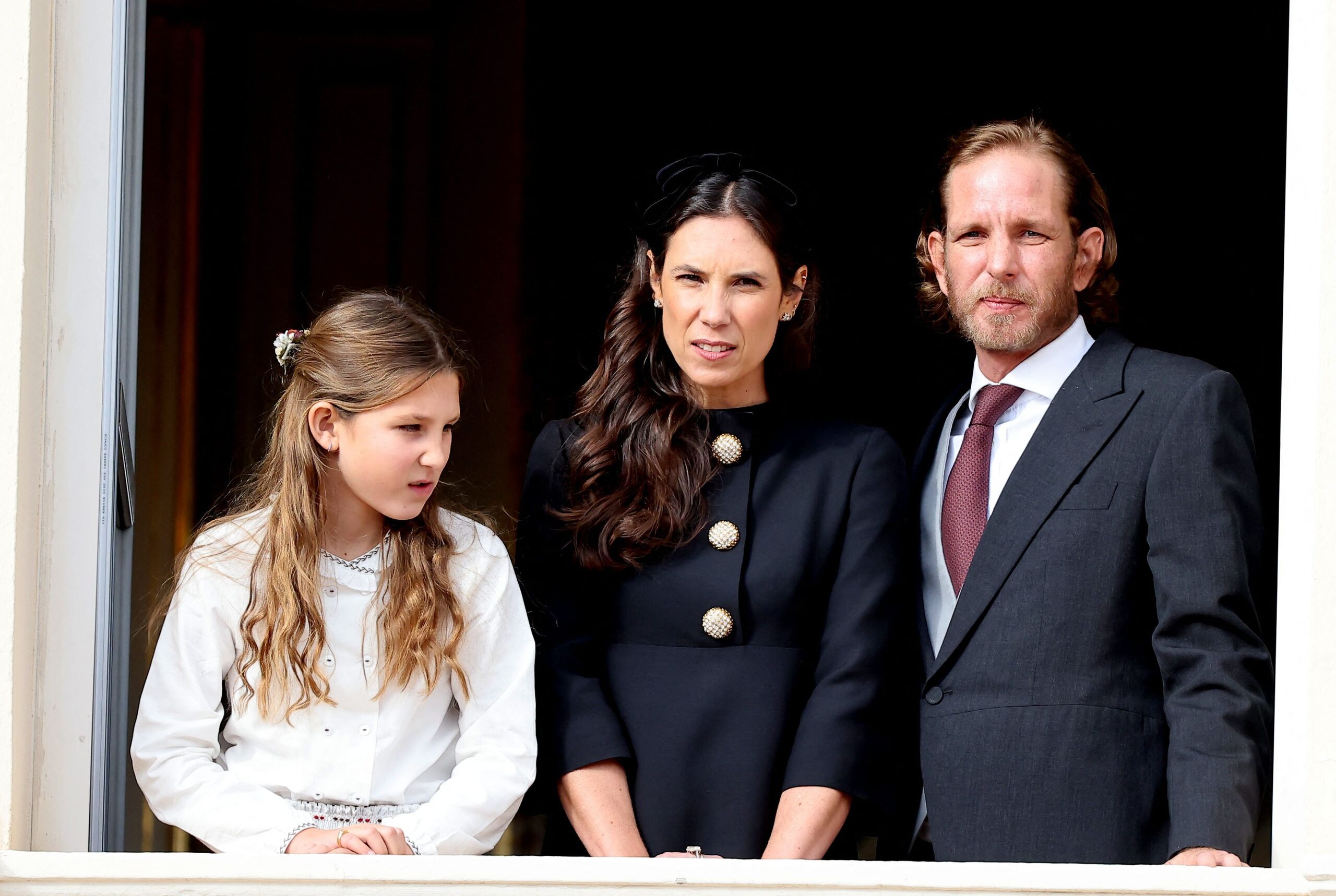 Andrea Casiraghi con su esposa, Tatiana Santo Domingo, con un conjunto de manga francesa en color negro, junto a su hija India.