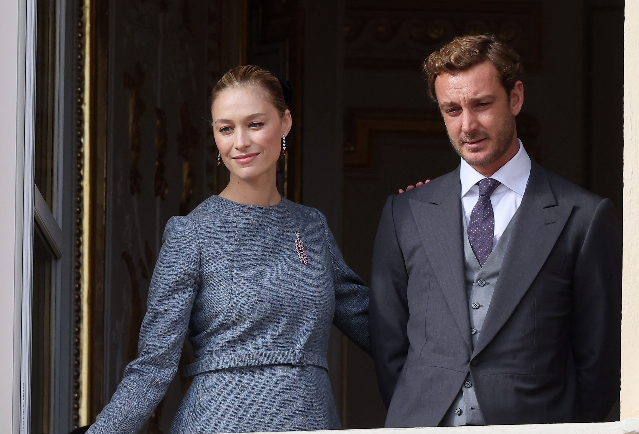Beatrice Borromeo junto a su marido, Pierre Casiraghi en el balcón del palacio de Mónaco