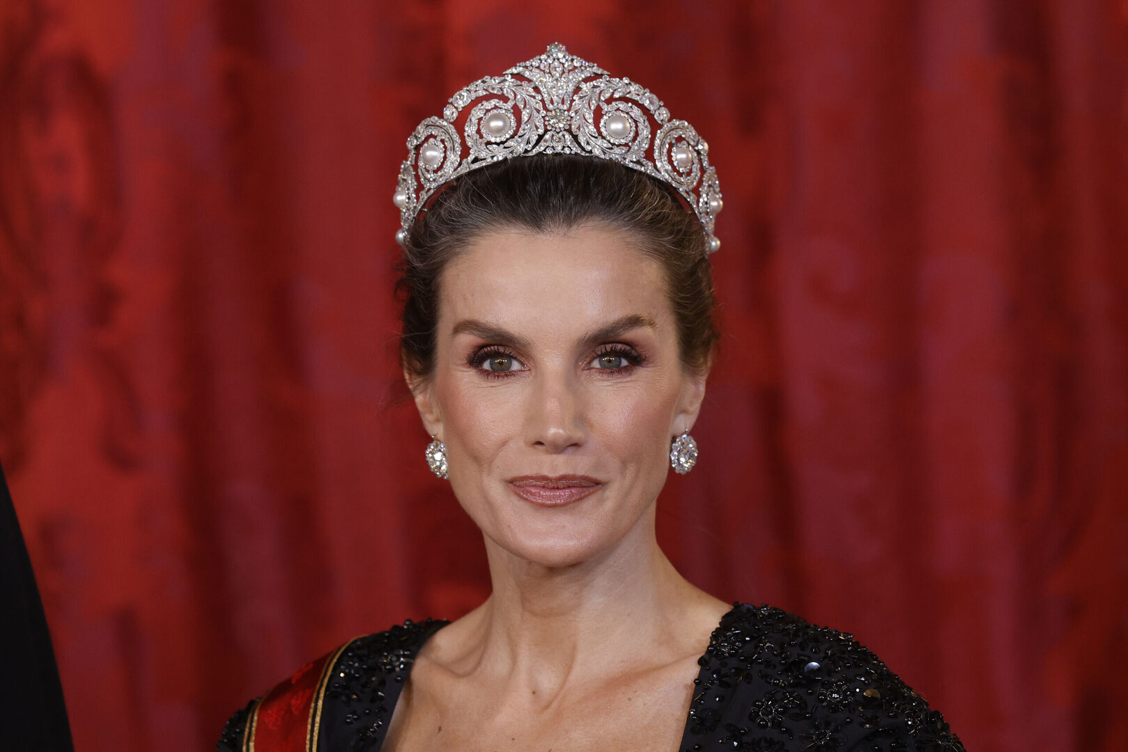 Para esta ocasión, la Reina ha lucido, por segunda vez, la tiara conocida como Cartier y que se puso por primera vez en 2018, en la cena de gala ofrecida con motivo de la visita de Estado del presidente de Portugal, Marcelo Rebelo de Sousa.