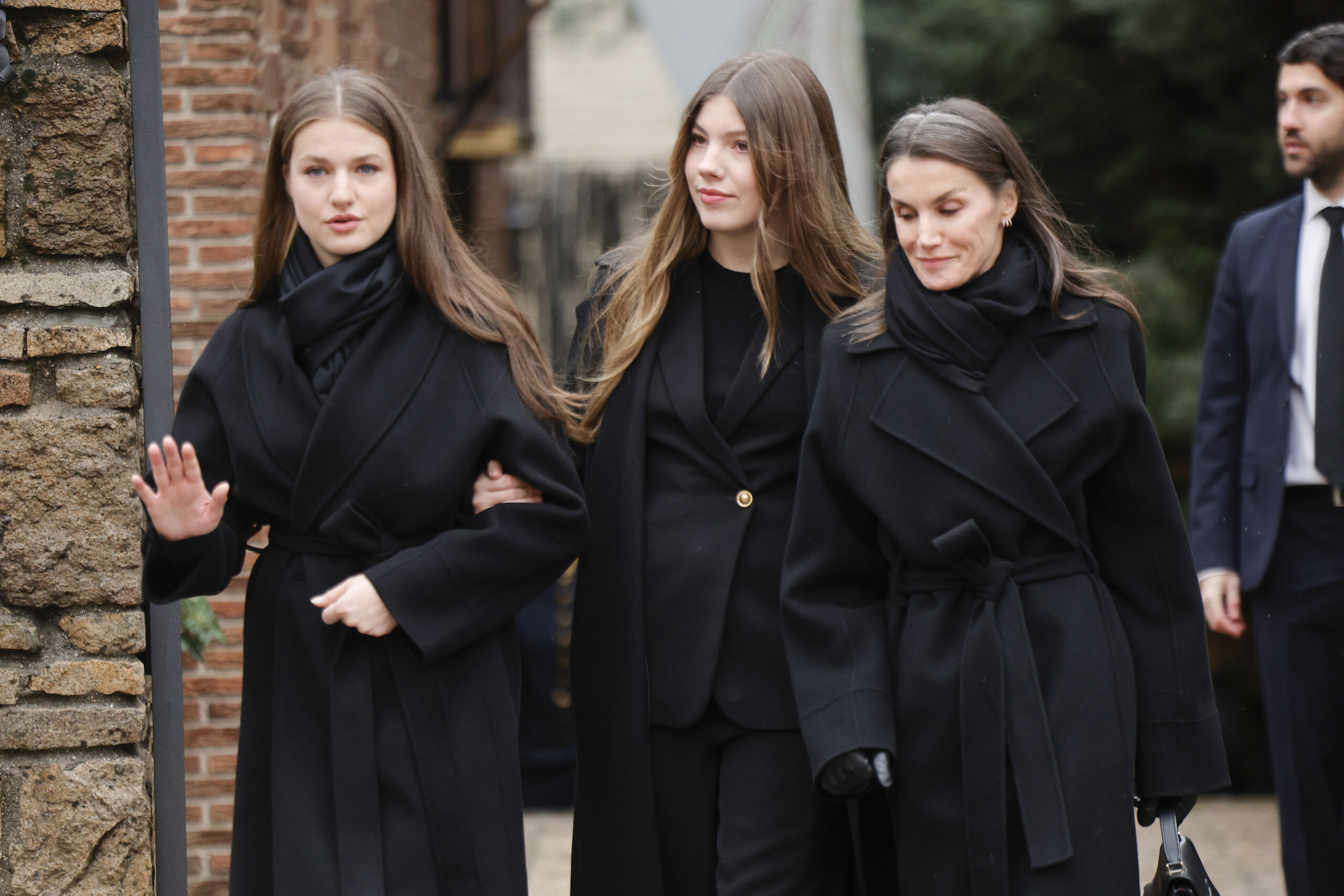 Poco antes de las 12:00 del mediodía han ido llegando los miembros de la Familia Real, así como las personas que se han acercado para participar en este adiós a la princesa. Vestidos de luto riguroso y con el gesto serio, la Reina Sofía ha llegado del brazo de la Princesa Leonor, muy pendiente de su abuela. Tras ellos, la Infanta Sofía, Don Felipe y Doña Letizia.