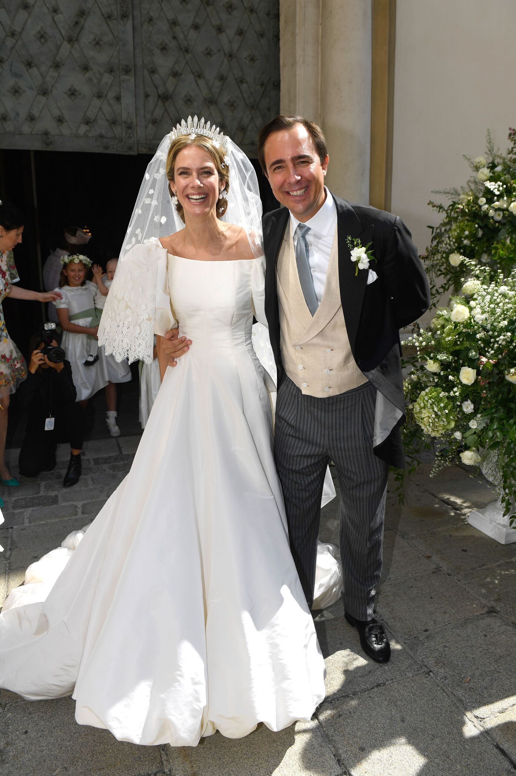 Anunciata de Liechtenstein se casó en Viena con Emanuele Musini y triunfó con un vestido de Valentino que destacaba por sus mangas abullonadas.