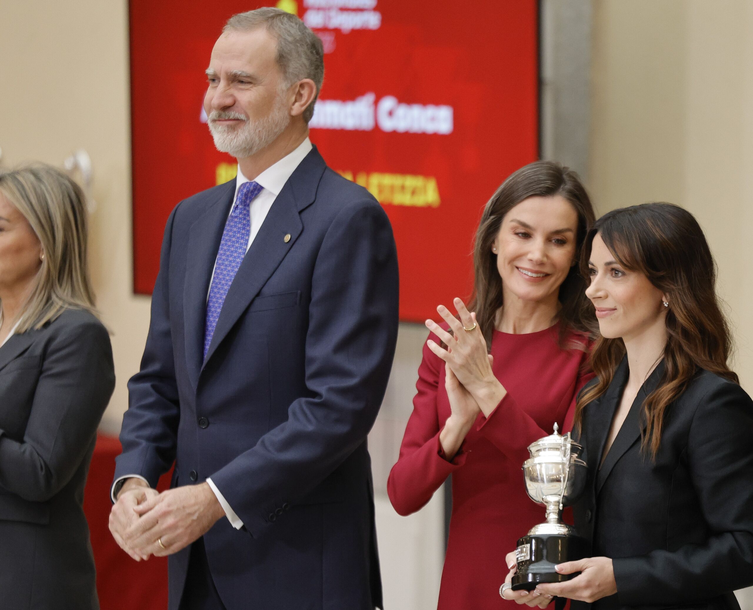 Una jornada que ha tenido dos momentos interesantes. El primero, cuando el Rey ha llamado la atención a la reina Letizia ya que, tras hacer su entrada en el salón del Pardo y dirigirse a sus asientos, se ha quedado de pie junto al resto de asistentes en vez de ocupar su asiento. Don Felipe, como siempre muy pendiente de todo, ha cogido cariñosamente de la cintura a su esposa y, de un modo apenas imperceptible, le ha indicado que se sentase. Y el segundo, el encuentro de los Reyes con Lola Fernández Ochoa, hermana de los esquiadores Blanca y Paco Fernández Ochoa, ambos fallecidos, ya que ha sido la encargada de recoger el Premio Rey Juan Carlos concedido a Álvaro Romero, que se encuentra compitiendo en los Juegos Olímpicos de Invierno de Milán-Cortina.