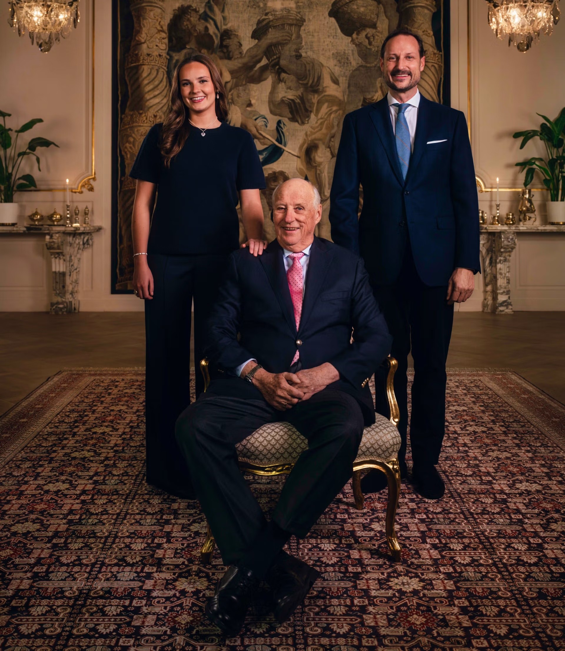 Harald, el monarca más longevo de Europa, es el jefe de Estado de Noruega desde 1991. Hace unos días la Casa Real noruega publicó una fotografía con motivo de su cumpleaños en la que posaba junto al príncipe Haakon y su nieta y segunda en la línea de sucesión al trono, la princesa Ingrid Alexandra.