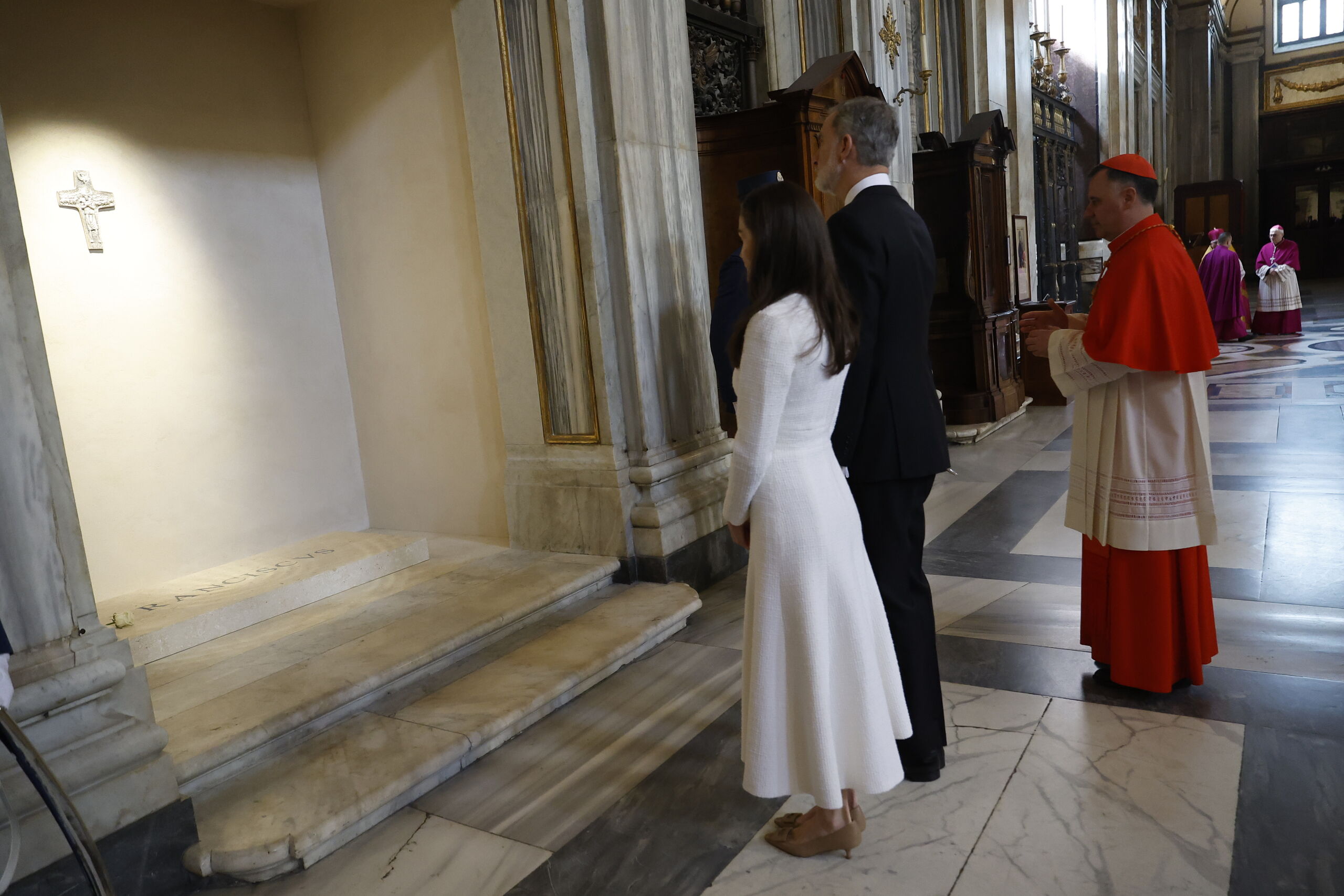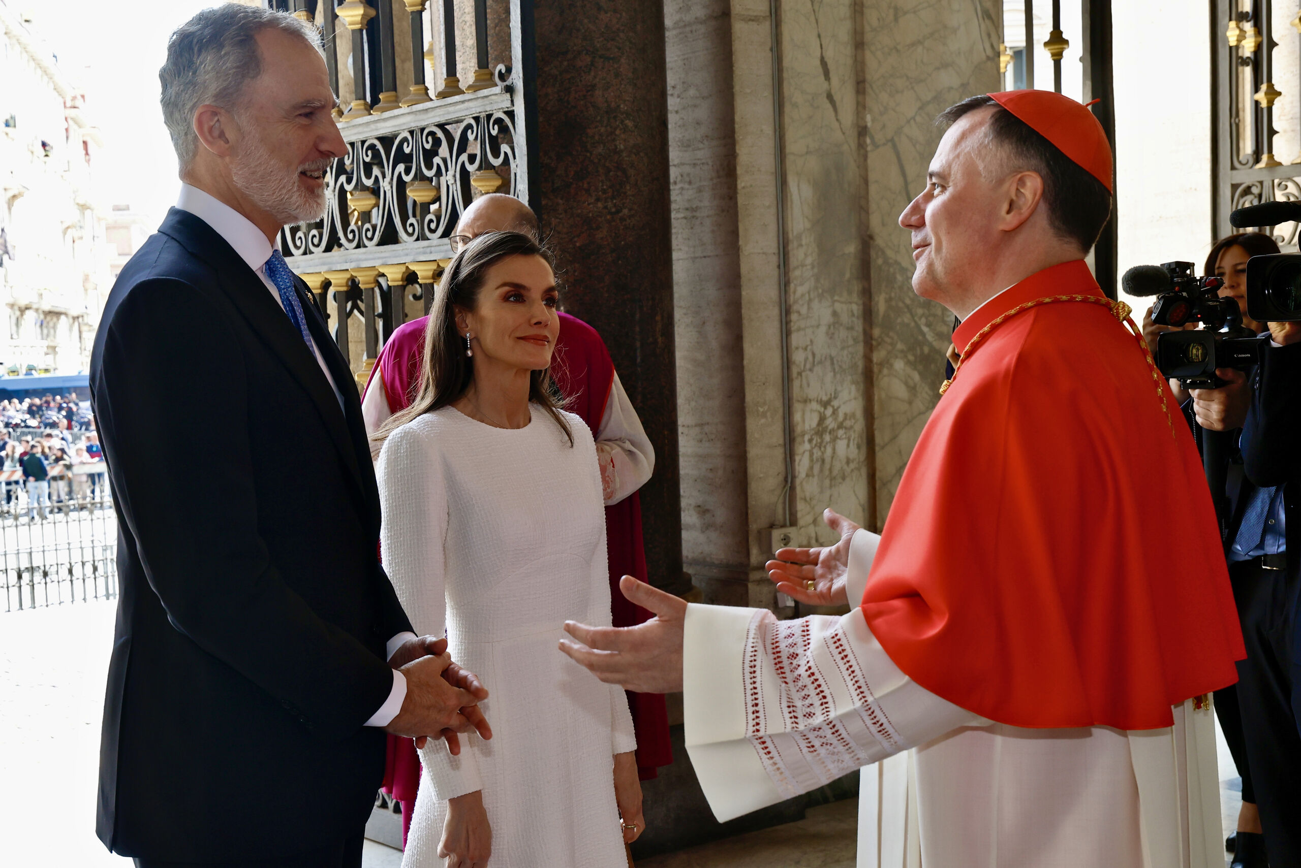 Don Felipe y Doña Letizia han sido recibidos por el arcipreste de la basílica Papal de Santa María la Mayor, cardenal Rolandas Makrickas
