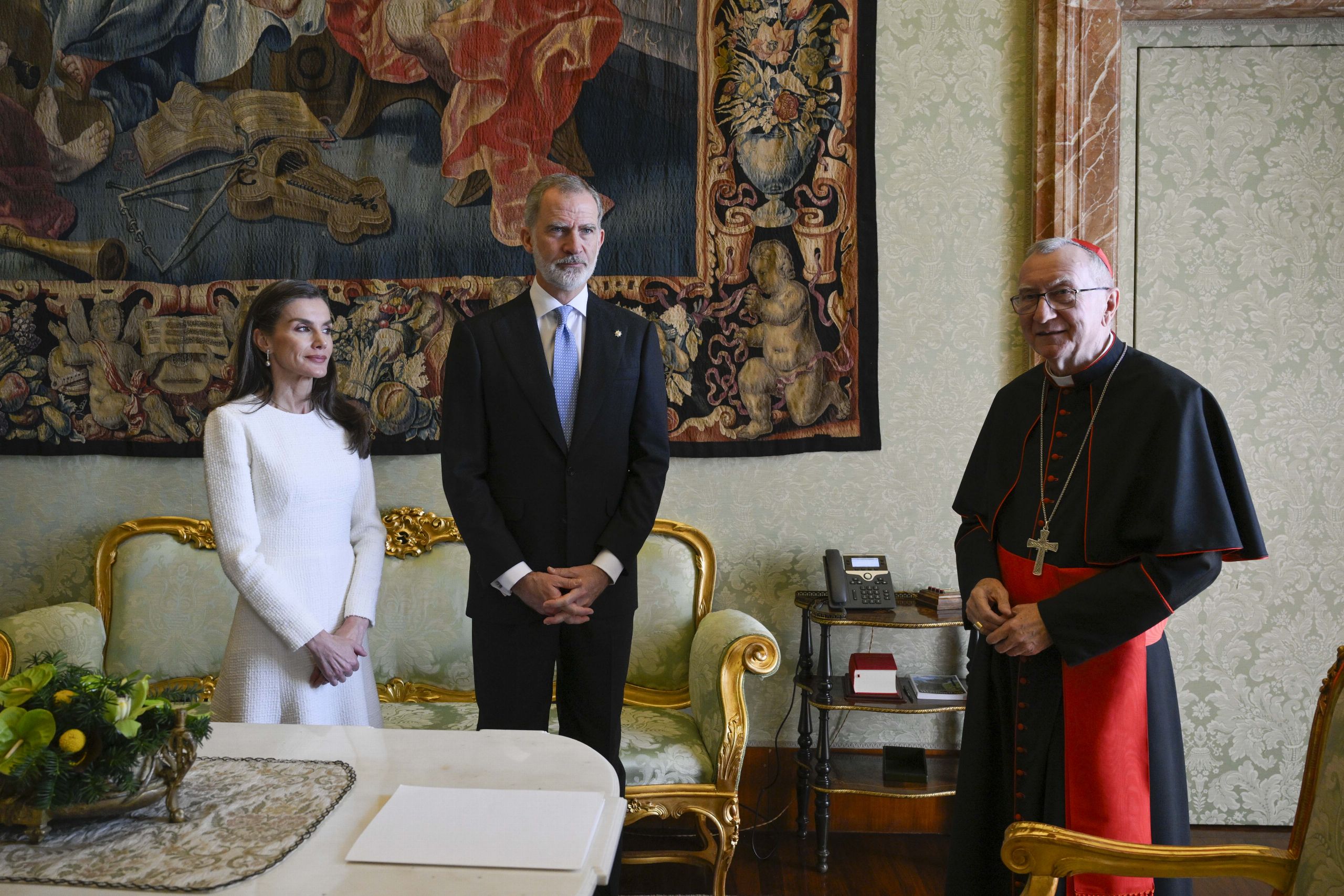 Posteriormente, Don Felipe y Doña Letizia se reunieron con el secretario de Estado Pietro Parolín.