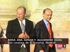 El ministro de Economía, Rodrigo Rato, llegó acompañado del titular de Hacienda, Cristóbal Montoro. Todos se preguntaban dónde estaba Gela, la mujer de Rato. En Tele 5 afirmaron que entró acompañando a la familia de Jaime Mayor Oreja.