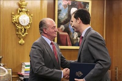 El rey Don Juan Carlos saluda a su hijo, el príncipe Felipe, antes de la reunión de ambos, en el Palacio de la Zarzuela, para tratar diferentes asuntos de sus respectivas agendas de trabajo, el pasado 19 de diciembre. (EFE)