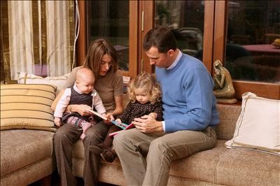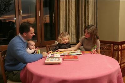 Los Príncipes de Asturias leen cuentos a sus hijas, las infantas Leonor y Sofía, en una jornada hogareña en su residencia del Palacio de la Zarzuela, el pasado 29 de noviembre. (EFE)