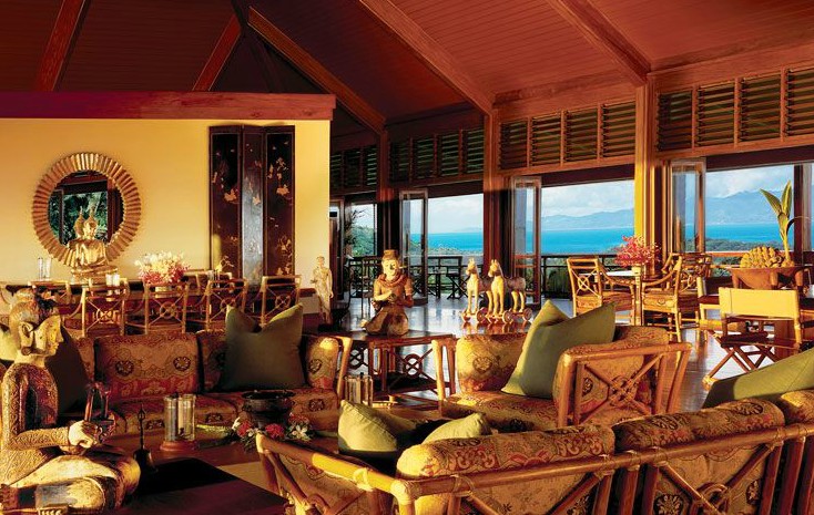 Sala de estar decorada con estatuas típicas de la zona