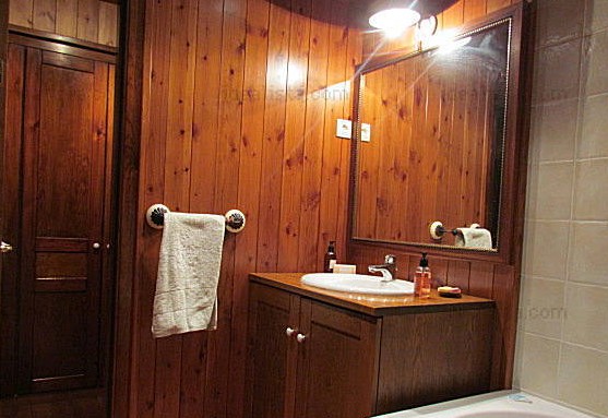 En todas las estancias destacan las paredes forradas en madera de primera calidad.