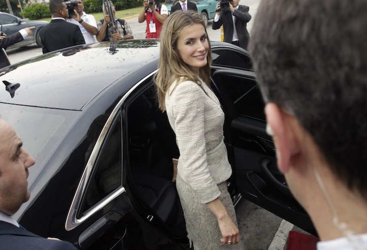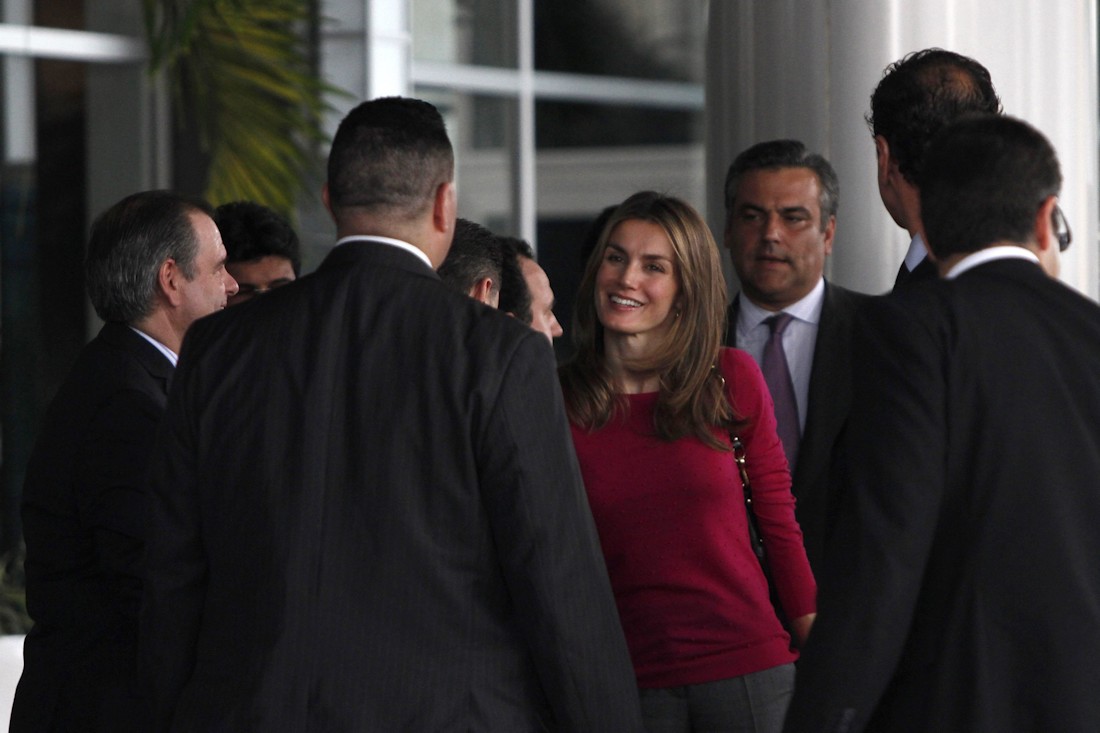 Los Príncipes de Asturias se encuentran de viaje oficial en Iberoamérica con el fín de impulsar y apoyar a las empresas españolas presentes en el continente americano. Doña Letizia siempre junto a Don Felipe, lució un nuevo peinado, ya que en lugar de su habitual melena muy lisa, optó por algunas ondas, que le endulzan el rostro. Además, lució un bonito traje chaqueta en color beige, verde y gris, con un bolso de mano marrón claro. Por su parte, Don Felipe lució barba y un traje de chaqueta azul, con camisa de rayas azules y corbata a juego.