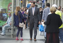 comentarios Durante su recorrido por la Carrera de San Jerónimo, muchos madrileños se han acercado a saludarle. Un ciclista sorprendido cayó justo delante de él.