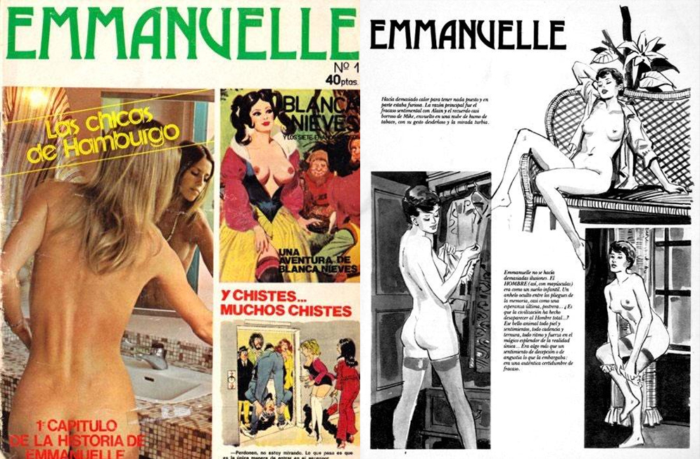 La película por fin llegó a España, y con ella la revista Emmanuelle, fotografía, comic y poco texto.