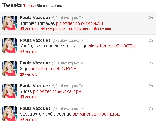 Pero no sólo eso. El despiste de Paula Vázquez le está costando numerosas llamadas de teléfono y mensajes, hasta el punto de que la gallega está colgando los números de los supuestos acosadores. "Al próximo desconocido que me llame o escriba, pondré su número aquí, para que sepa lo que es", o "Vosotros lo habéis querido", amenazó la presentadora antes de comenzar a mostrar los números de quienes insisten en contactar con ella. Muchos le han indicado que esto puede ser ilegal.