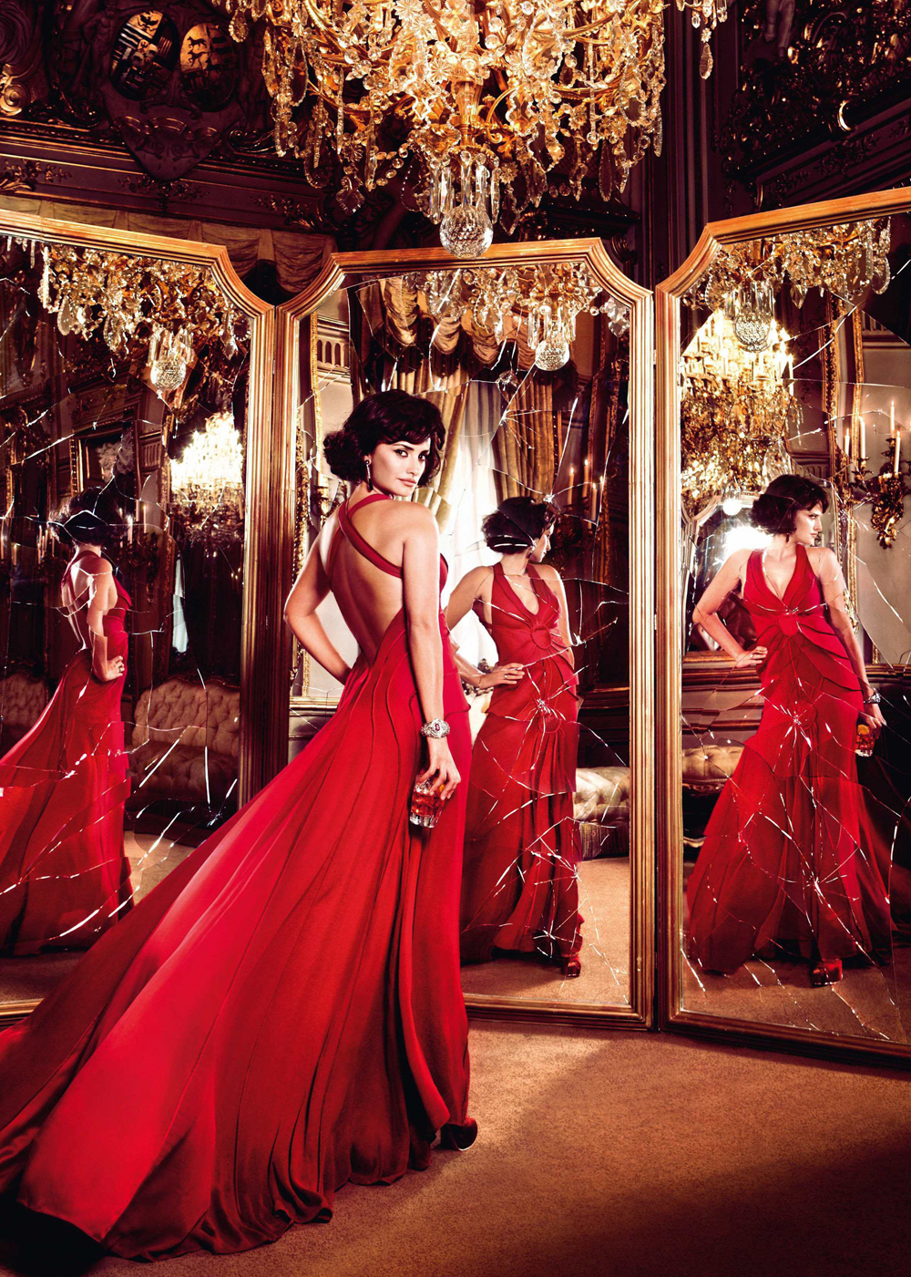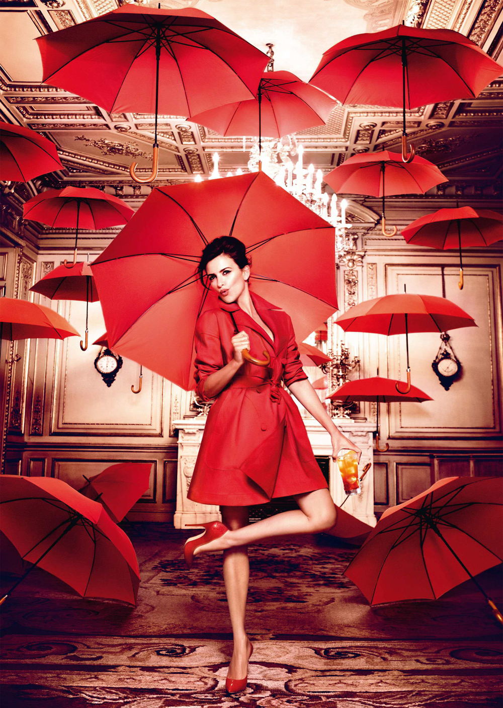 La actriz española Penélope Cruz protagoniza las trece páginas del calendario Campari 2013 en las que luciendo un vestido del típico rojo Campari y portando una copa de la bebida escarlata.