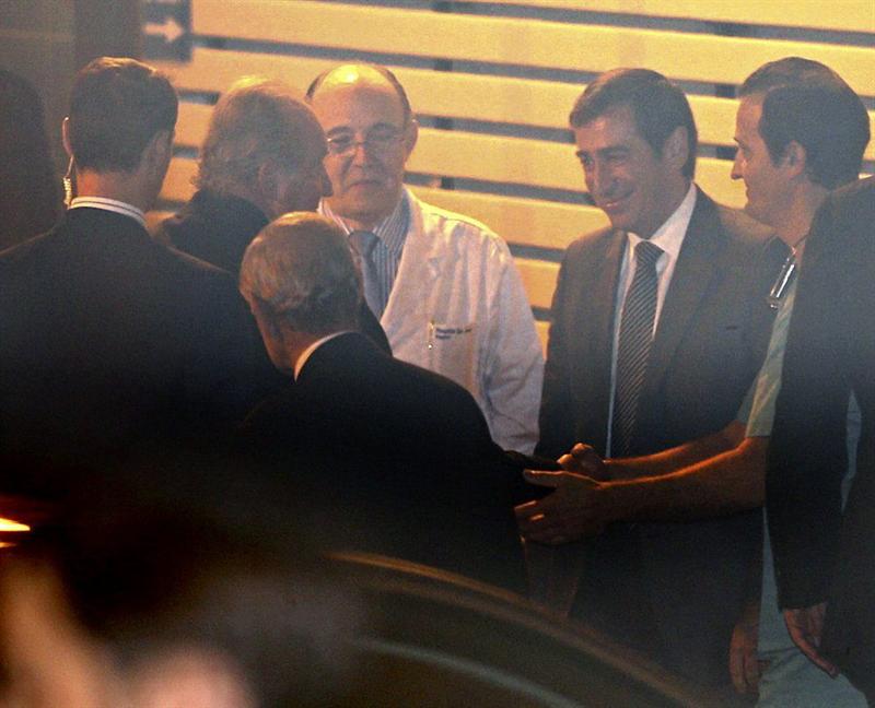 El Rey saluda al equipo médico que le espera a las puertas de la clínica