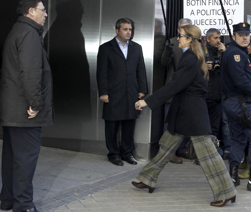 La infanta Cristina sonríe mientras Urdangarín saluda a su llegada.
