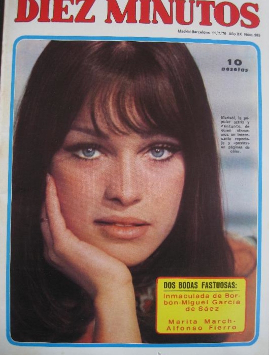 1970. Diez Minutos costaba diez pesetas. Marisol dejaba atrás la niñez y se convertía en una chica preciosa con rasgos de modelo europea ye-yé. Sin ventanas, una portada para ella sola, reflejo de su estatus de superestrella nacional.
