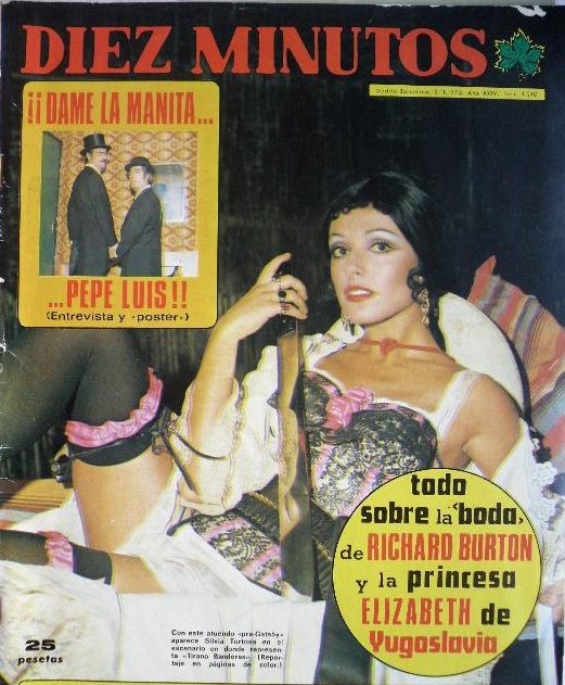 Silvia Tortosa representaba Tirano Banderas en el teatro y promocionaba la obra con este posado. En la ventanita aparecen Tip y Coll, que causaban furor en televisión. Tanto es así, que arrebataron a la actriz el póster central habitualmente reservado a las estrellas femeninas.