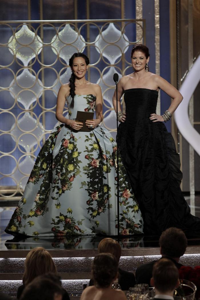Lucy Liu (izq) y Debra Messing (der) durante la gala de la 70 edición de los Globos de Oro. Sus elecciones no fueron precisamente las más afortunadas de toda la gala.